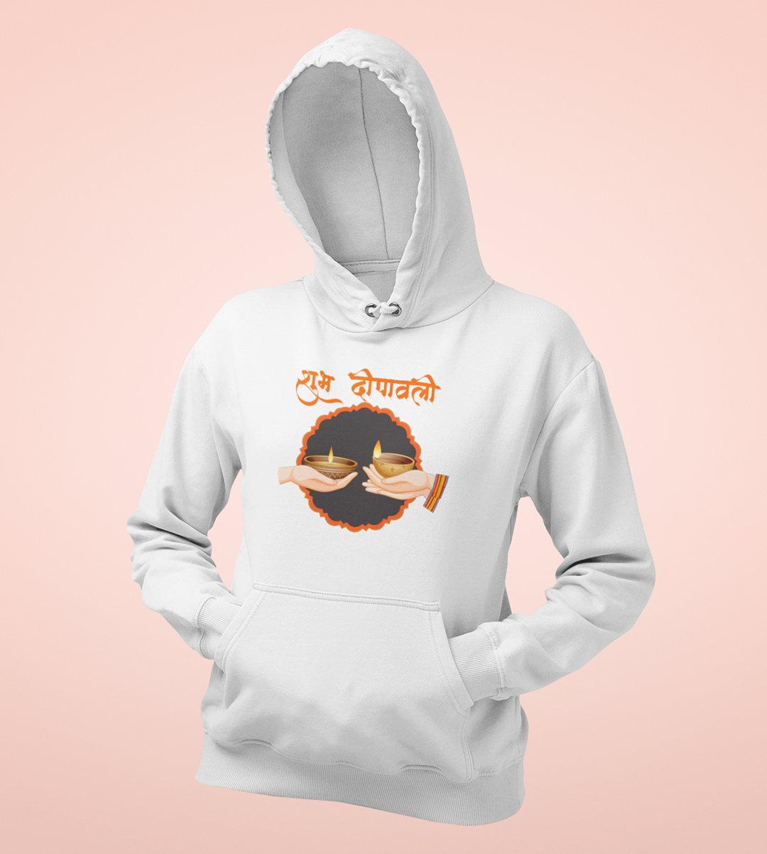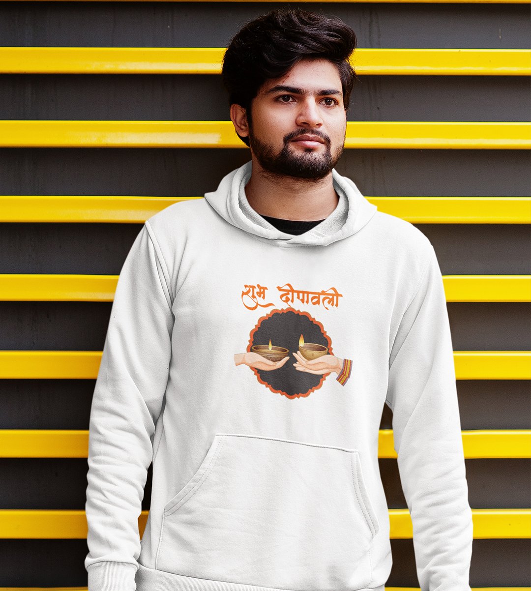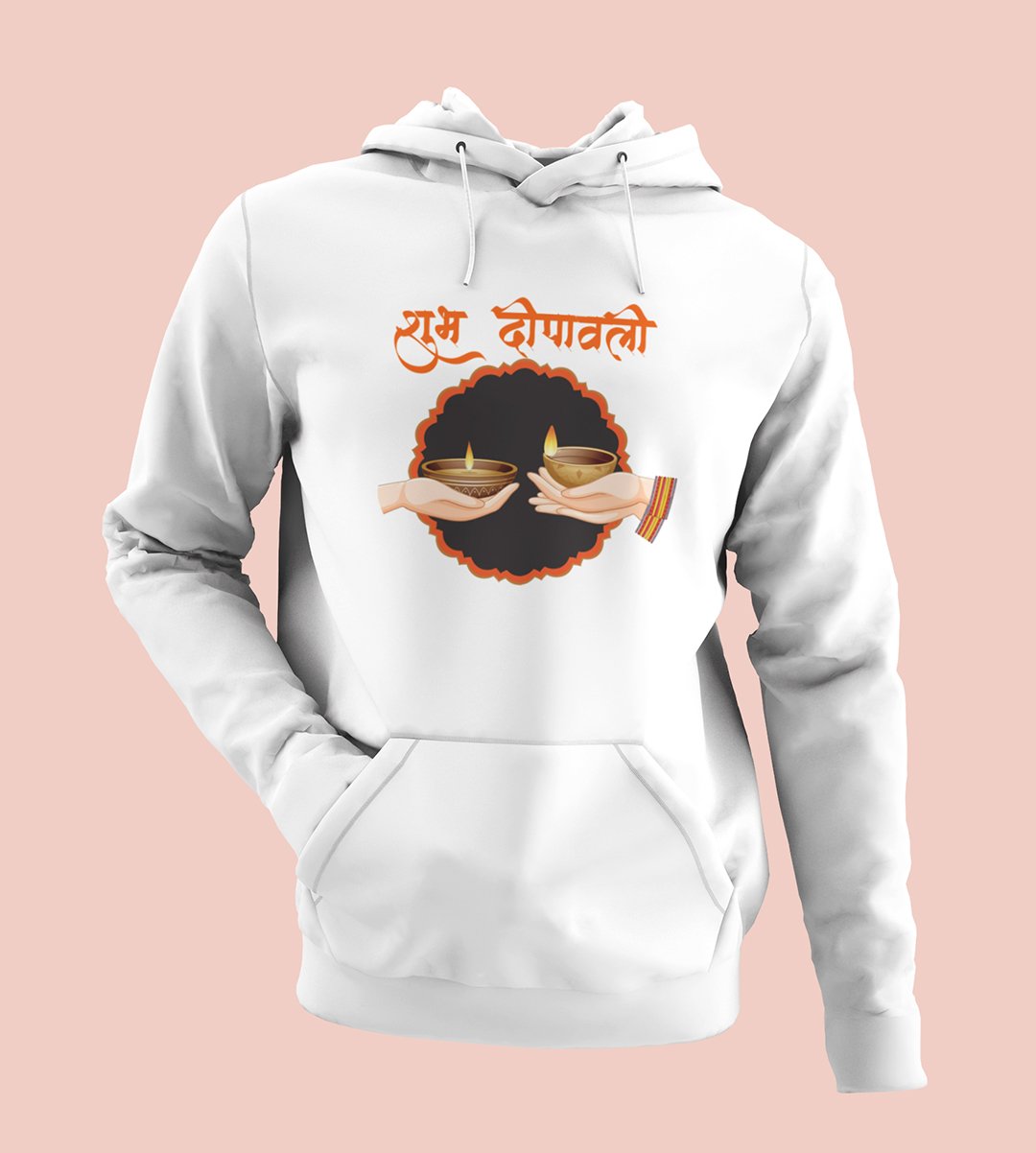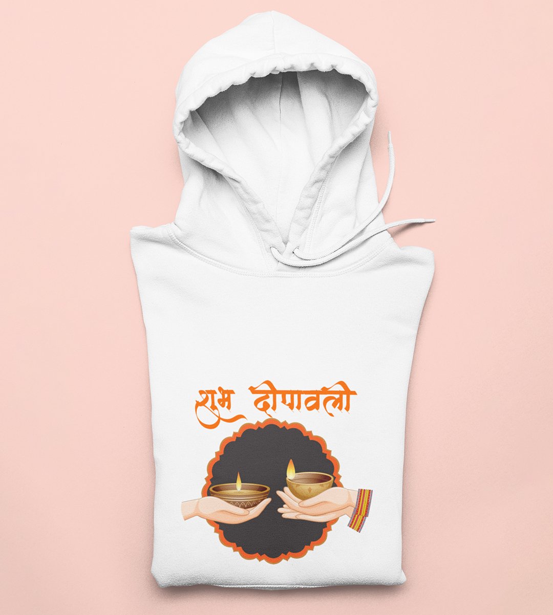 Extend warm and heartfelt Diwali greetings with our "Subh Dipavali" White Hoodie . This elegant Marathi text design beautifully conveys the spirit of the festival. Sip your while spreading the joy of Diwali with every sip.