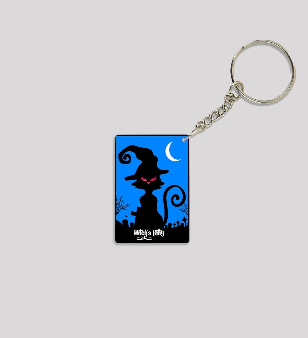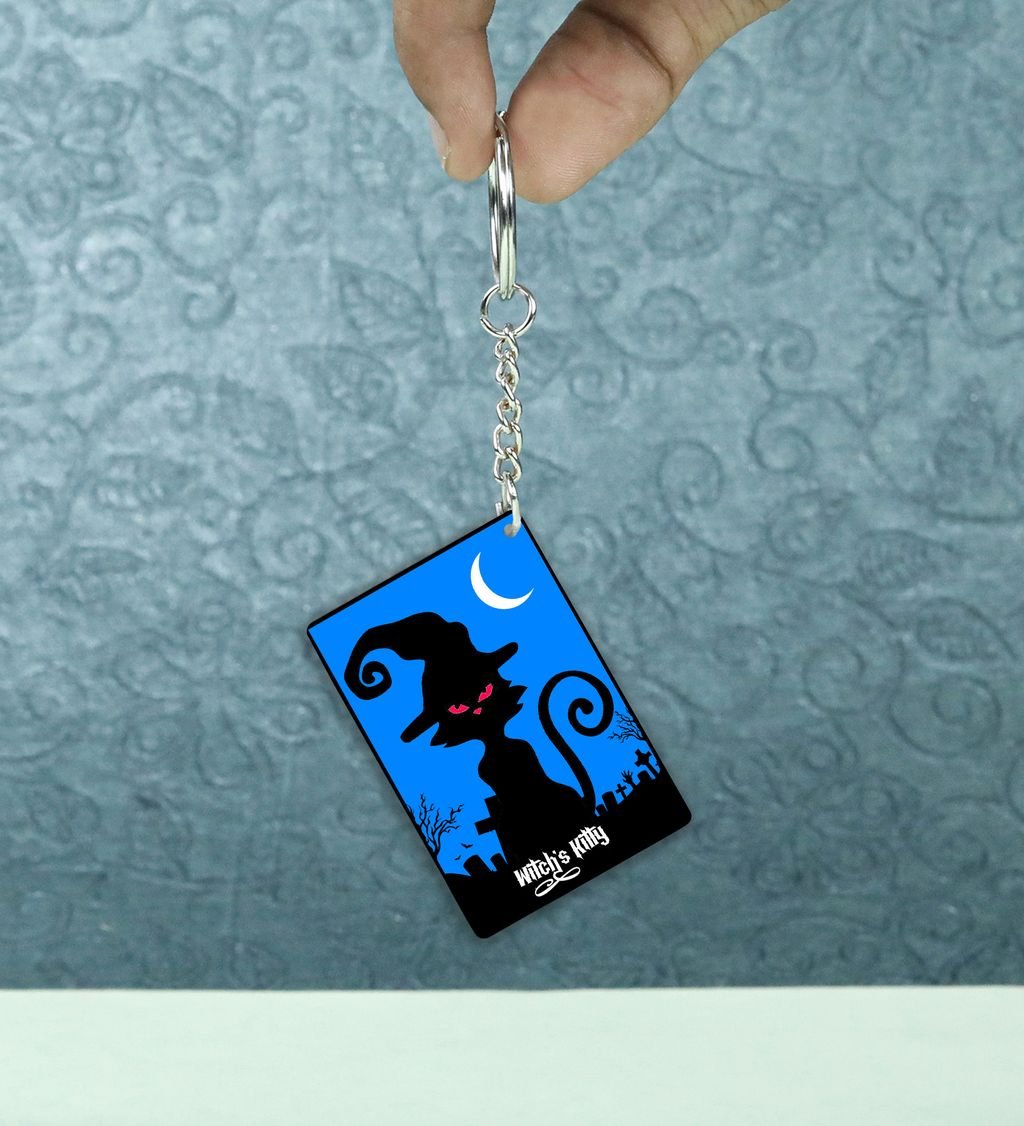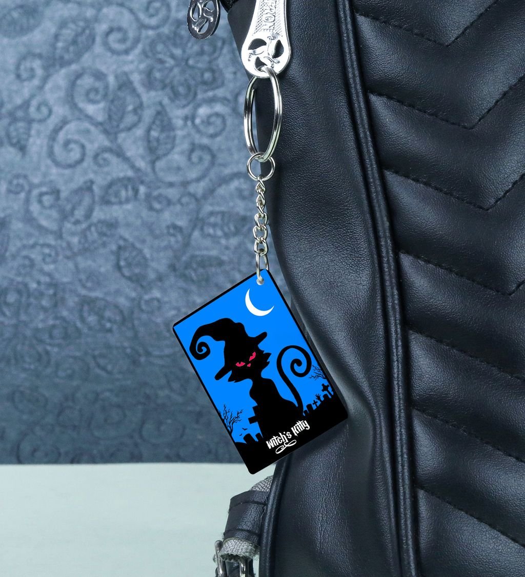 Add a dash of spooky charm to your everyday carry with this Halloween Cat rectangular keychain. Featuring a bewitching black cat design with eerie eyes and festive flair, it