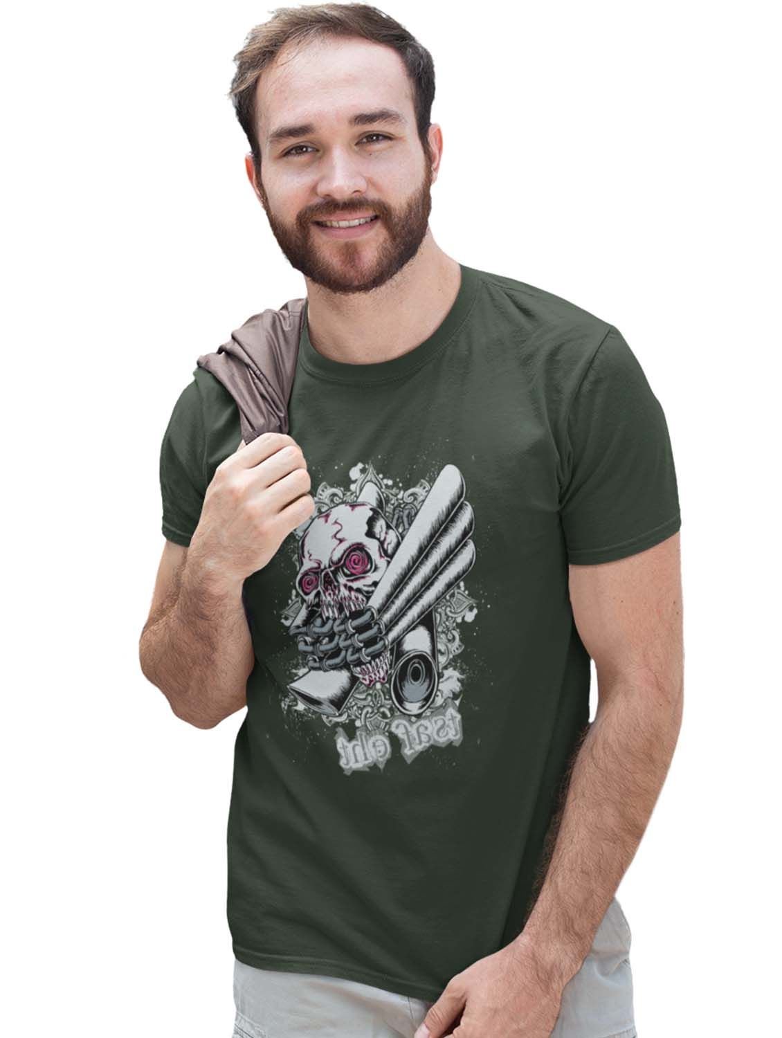 The Strange Craniums Green Round Neck Cotton Half Sleeved T-Shirt with Printed Graphics