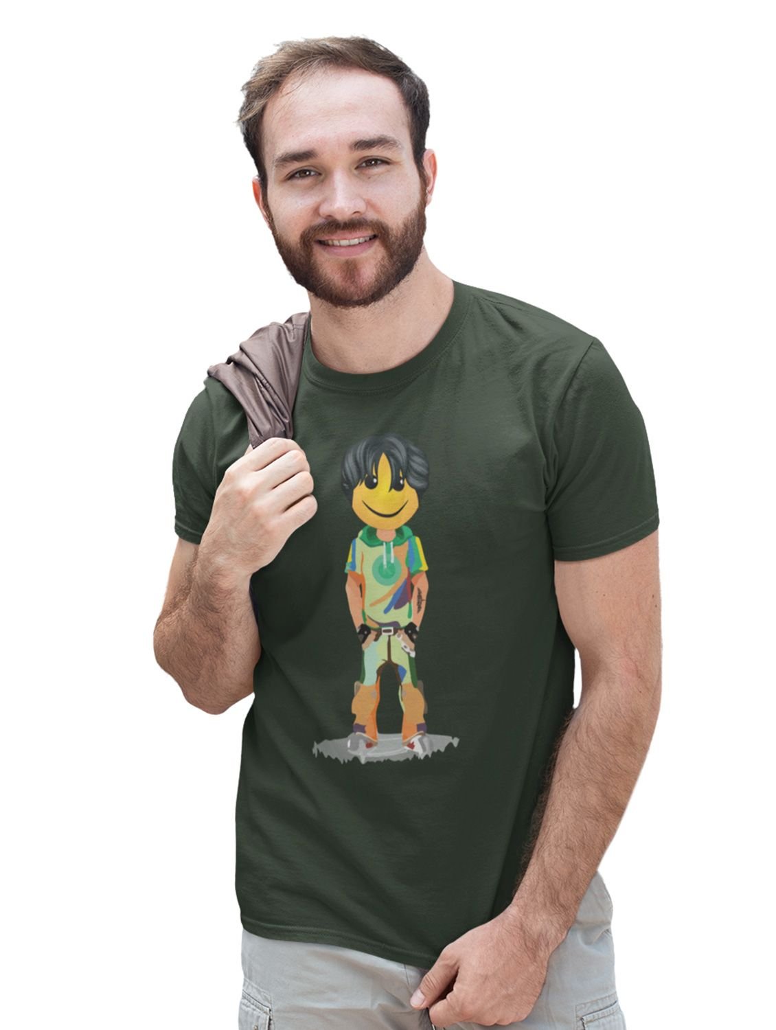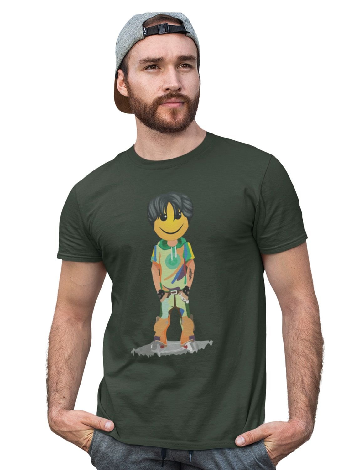 A Young Standing Emoji Boy Printed T-shirt (Green) - Clothes for Emoji Lovers - Suitable for Fun Events - Foremost Gifting Material for Your Friends and Close Ones