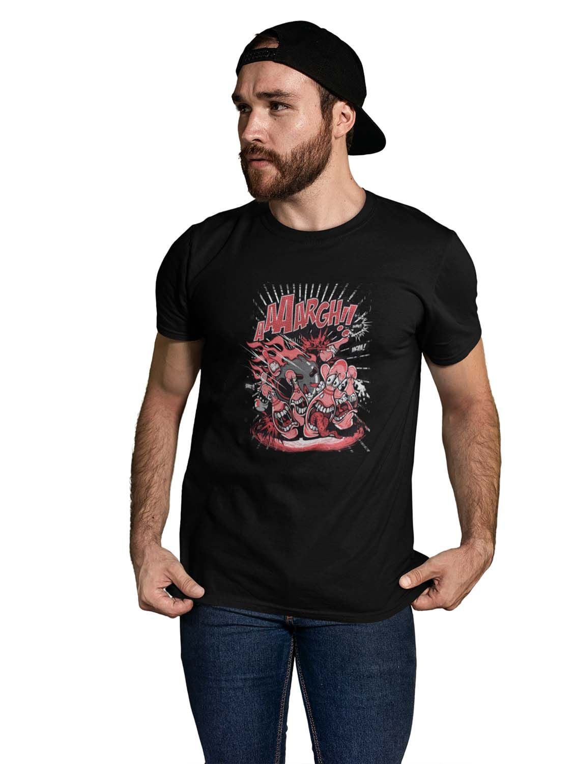 The Monster Bowling Black Round Neck Cotton Half Sleeved T-Shirt with Printed Graphics