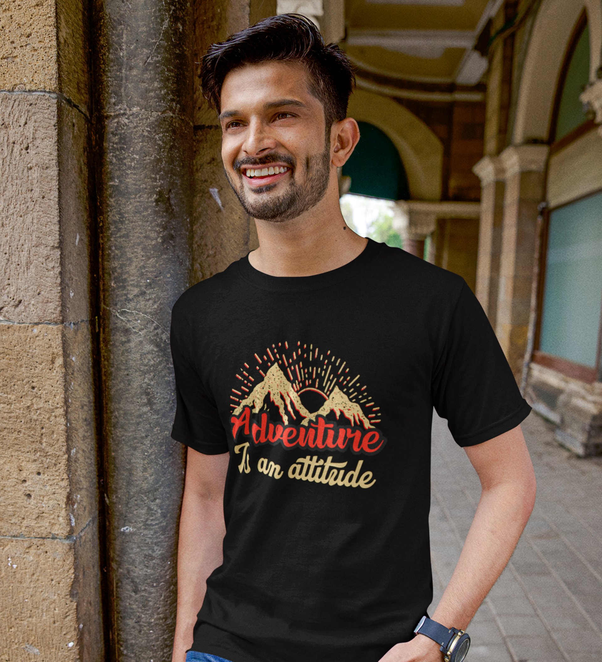JD.TRENDS Adventure Is An Attitude Black Round Neck Cotton Half Sleeved Men's T-Shirt with Printed Graphics