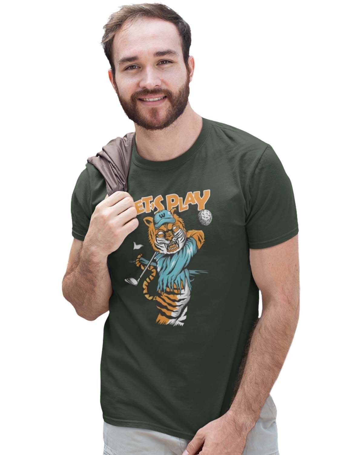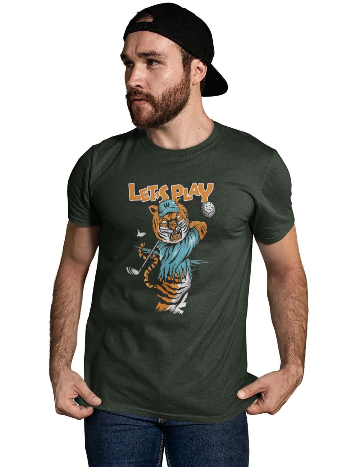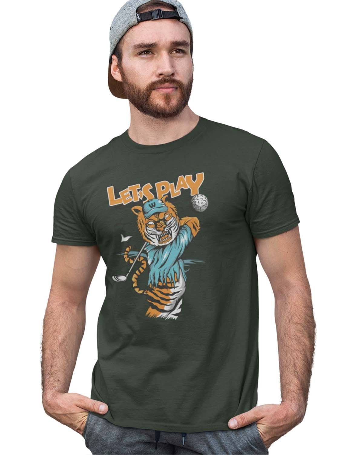 Let's Play Green Round Neck Cotton Half Sleeved T-Shirt with Printed Graphics