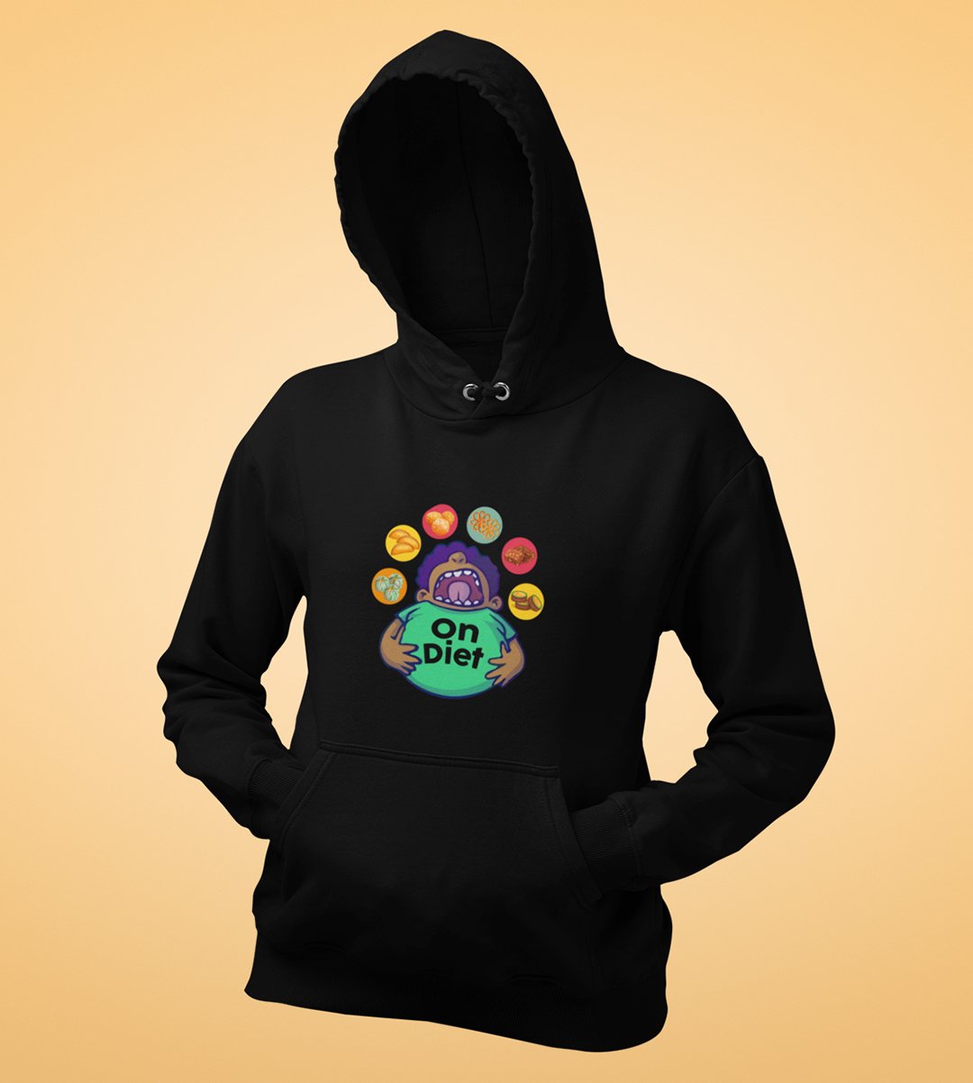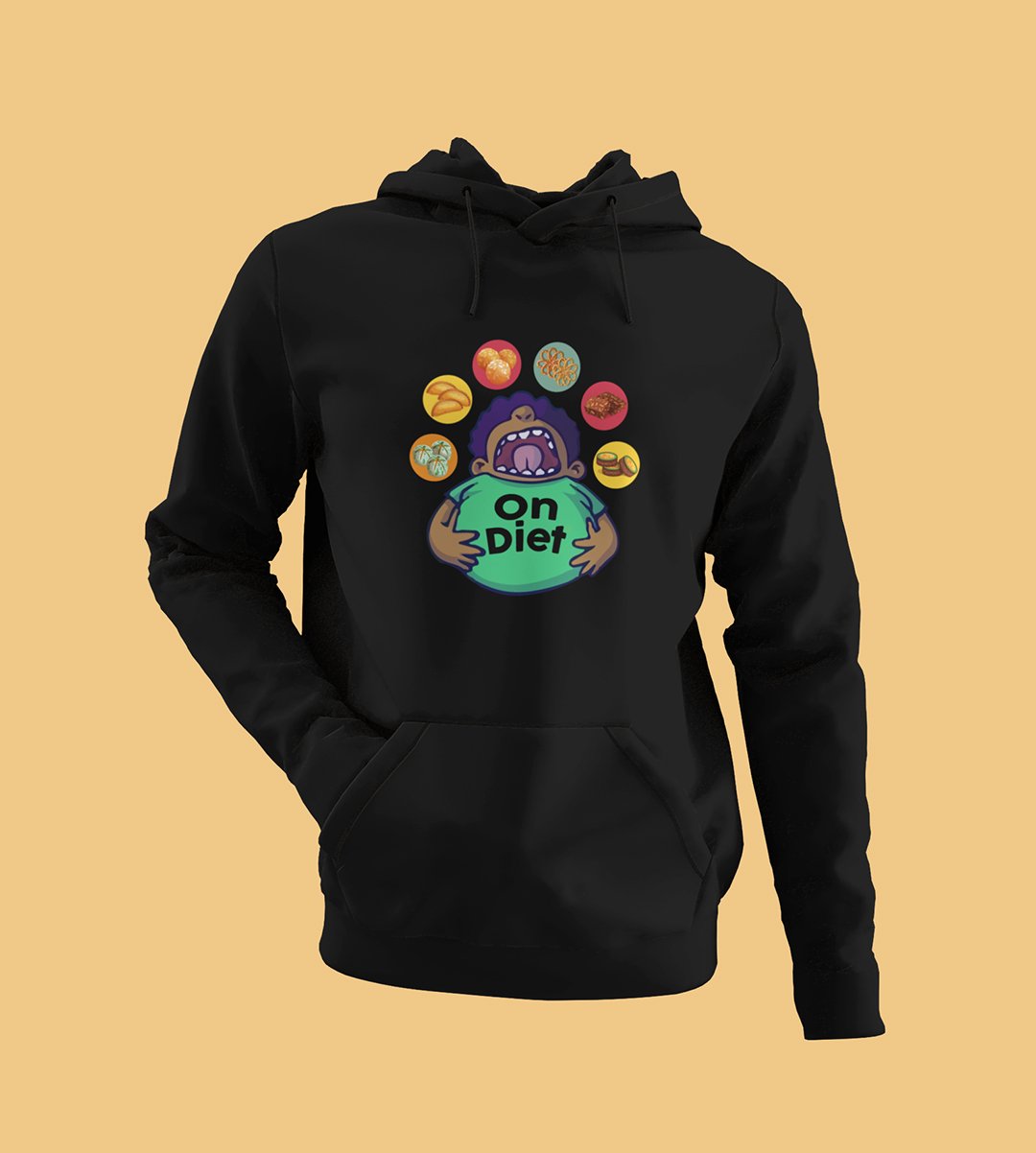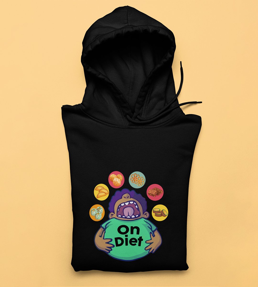 Navigate the sweet temptations of Diwali with our "On Diet Diwali" black Hoodie . This witty design playfully captures the struggle of balancing your resolve with the irresistible allure of Diwali sweets. Sip your with a side of laughter and enjoy the delightful contradiction of being "on diet" during the festive season.