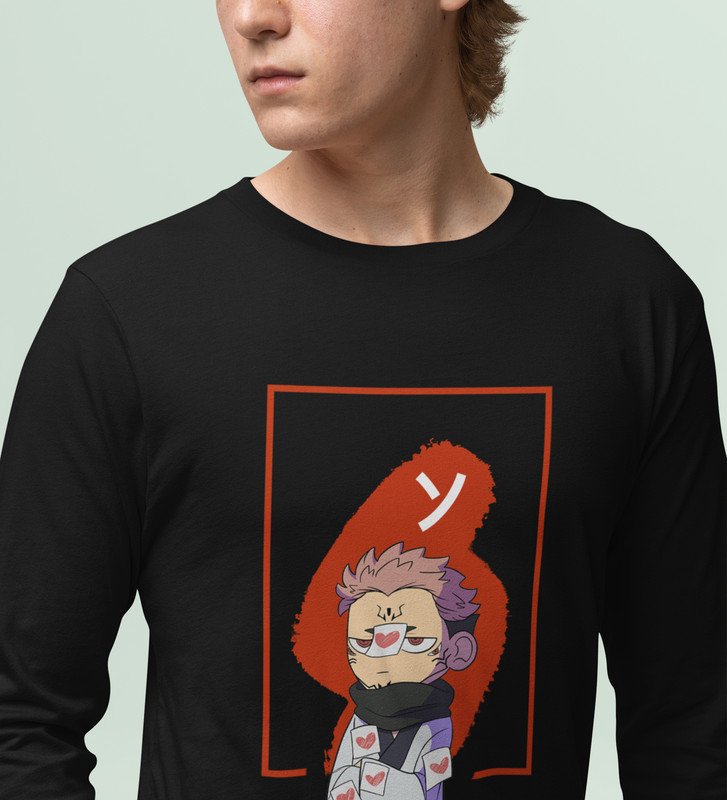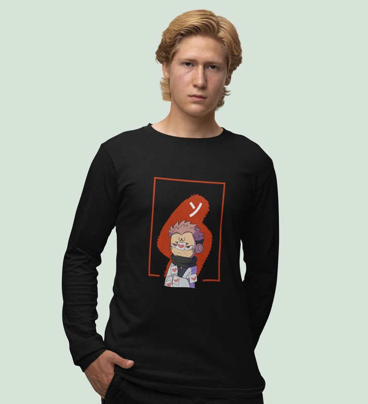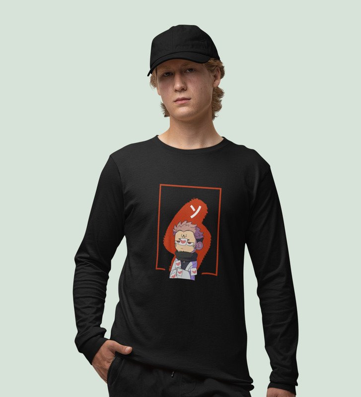 Anime Printed Cotton Black Full Sleeves Tshirt For Mens and Boys