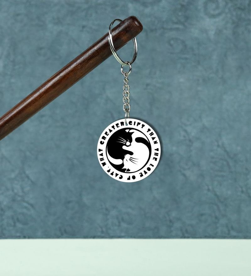 Artistic Kitty Love Quote Design Printed Round Keychain Pack of 2