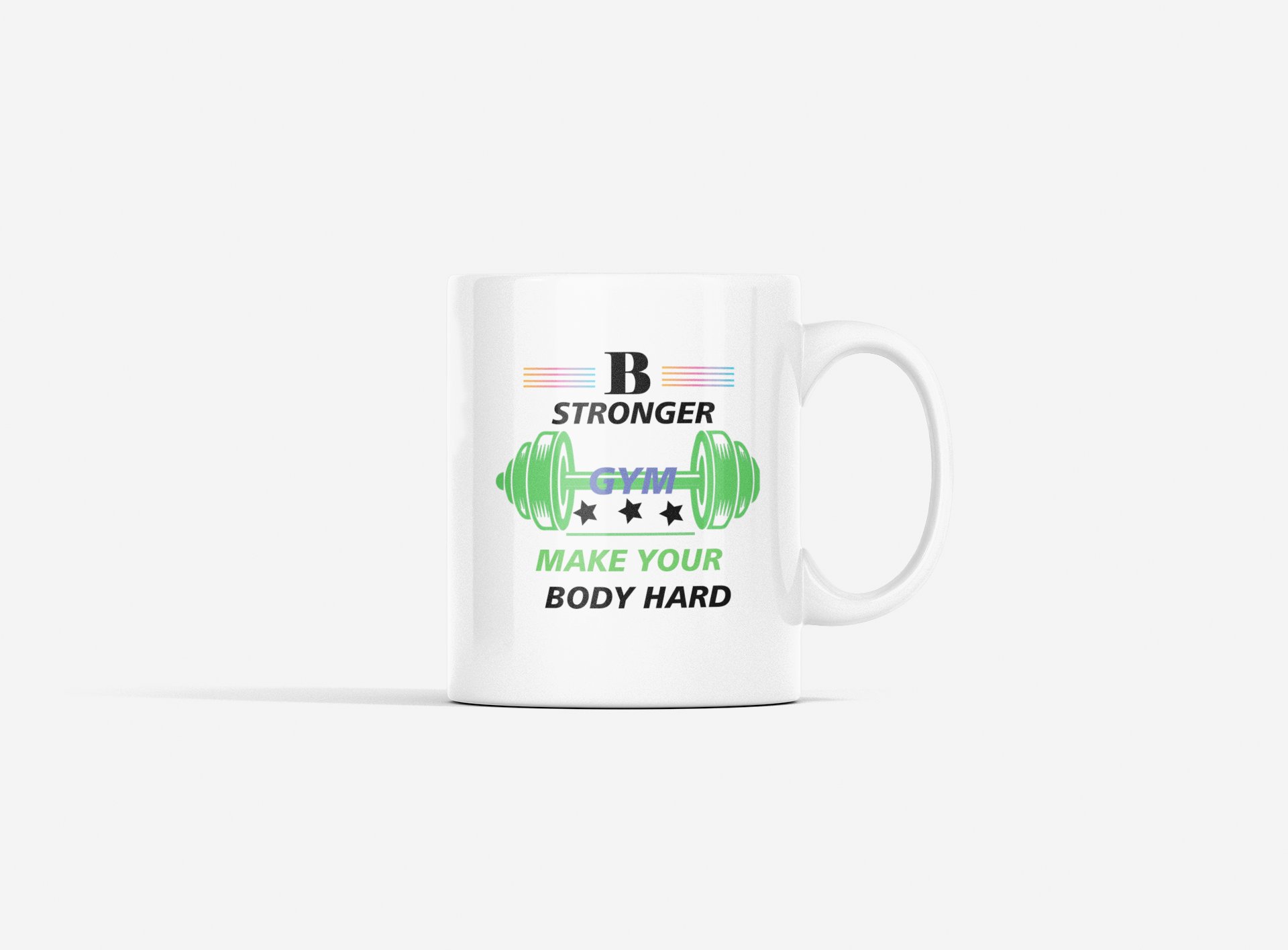 Be Stronger, Make Your Body Hard - gym themed printed ceramic white coffee and tea mugs/ cups for gym lovers