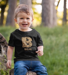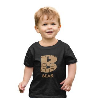 Beary bear, Printed Cotton Tshirt (black) for Boys