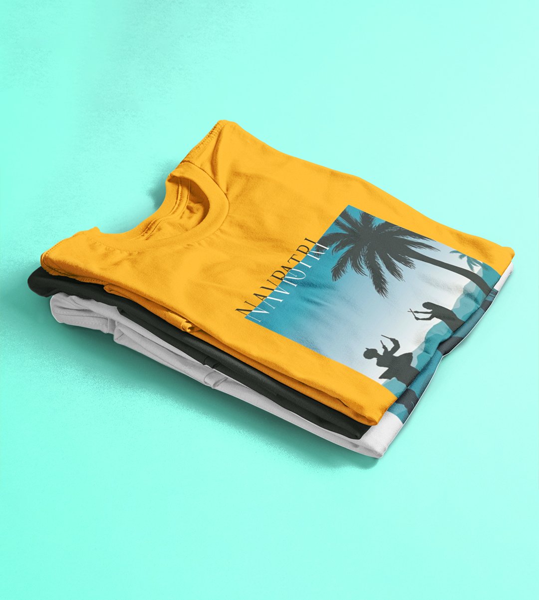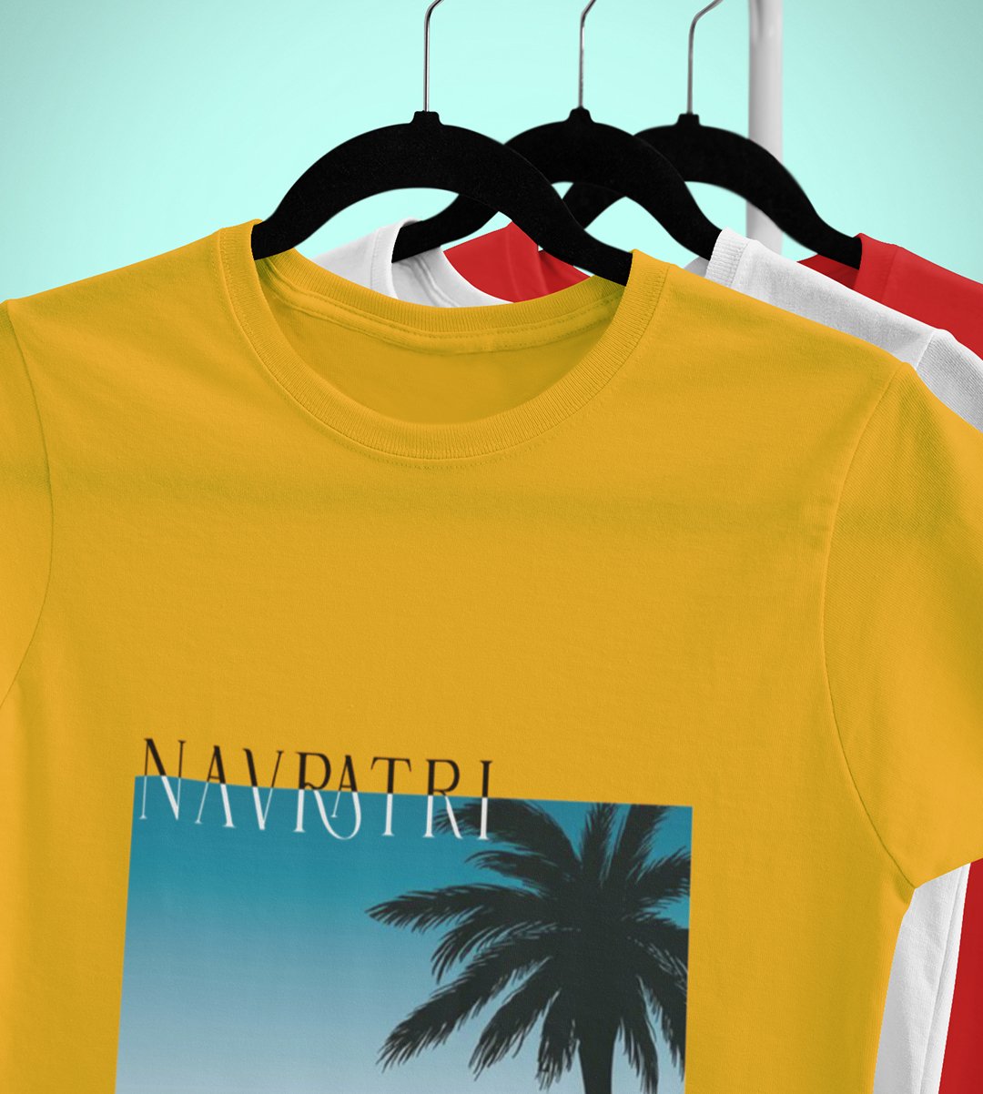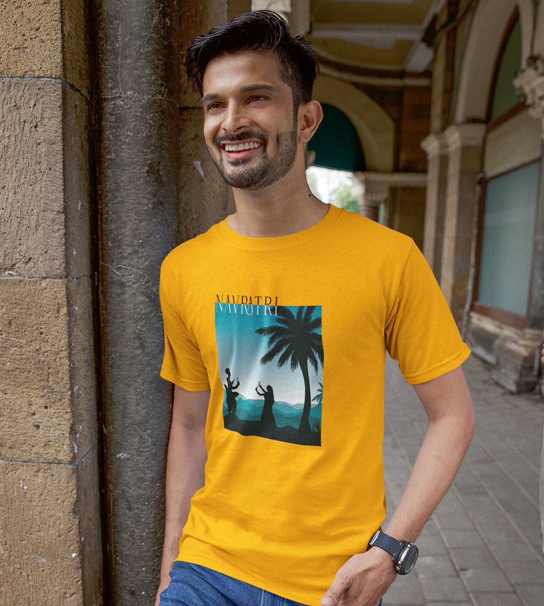 Navratri is a very auspicious festival for hindus. It takes place at the beginning of October and sometimes September. Enjoy the 9 days of festivities with full zeal and make yourself submerged in the love of Maa Durga. Navratri is also known as Durga Puja. And with this Tees, you can shine like a star during this festive season with our navratri themed cotton half sleeved Tshirts. You can pair our t-shirts with trousers and denim of your choice and make it a weekday smart casual or weekend wear. This is durable. This tshirt is smooth and soft which makes you comfortable to wear during all seasons. The printing in it is durable and odourless. It has five sizes, S,M,L,XL,XXL. The Tshirt colour is intact even after repeated washes. It can be kept in your wardrobe and hangers. Please avoid washing mashine to clean this Tee, it may affect the print. Hand wash only. We have brought you many navratri related designs printed on our different colour Tshirts to choose from. Grab it now.