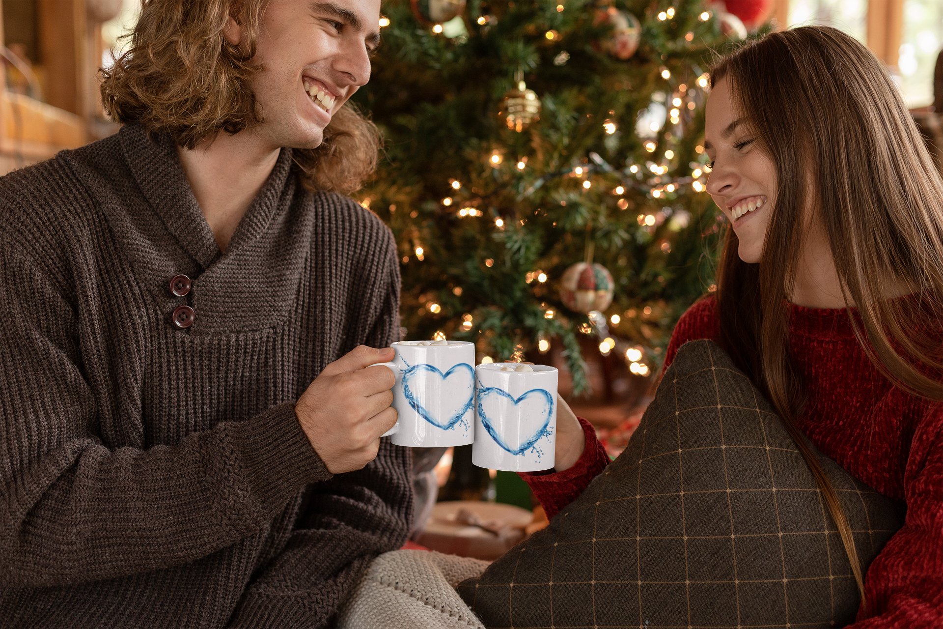 Blue watery heart- Valentine's Day Gift- White Valentine Coffee Mug