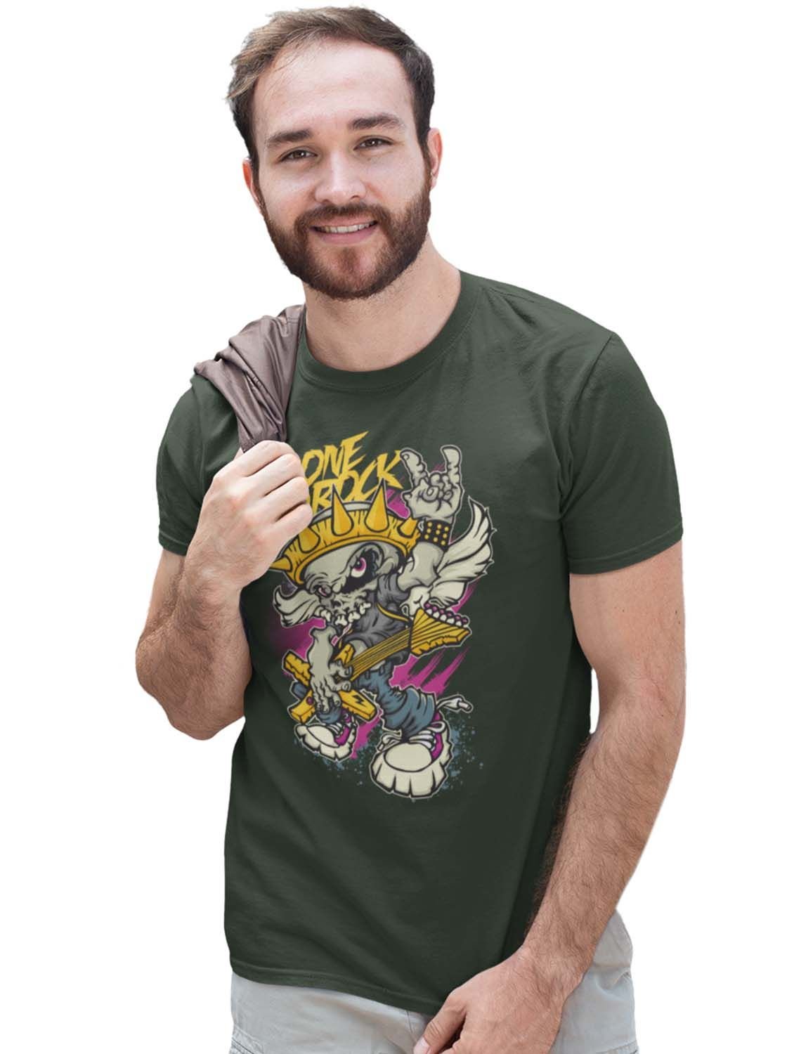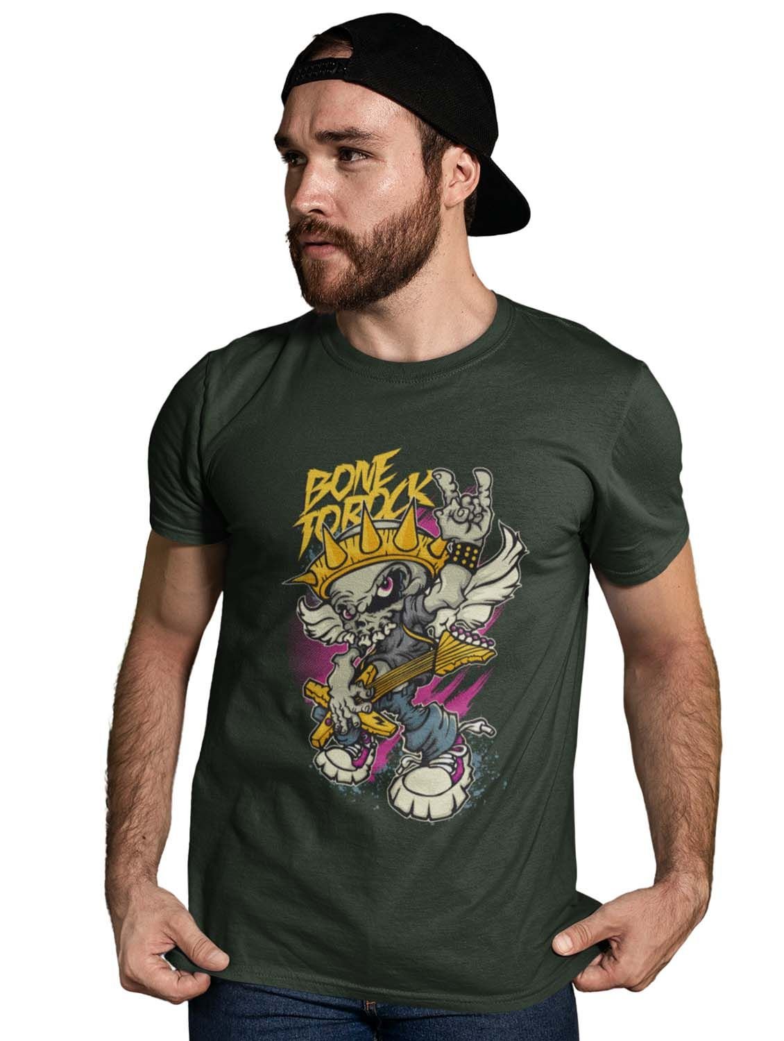 Bone To Rock Bone To Rock Green Round Neck Cotton Half Sleeved T-Shirt with Printed Graphics