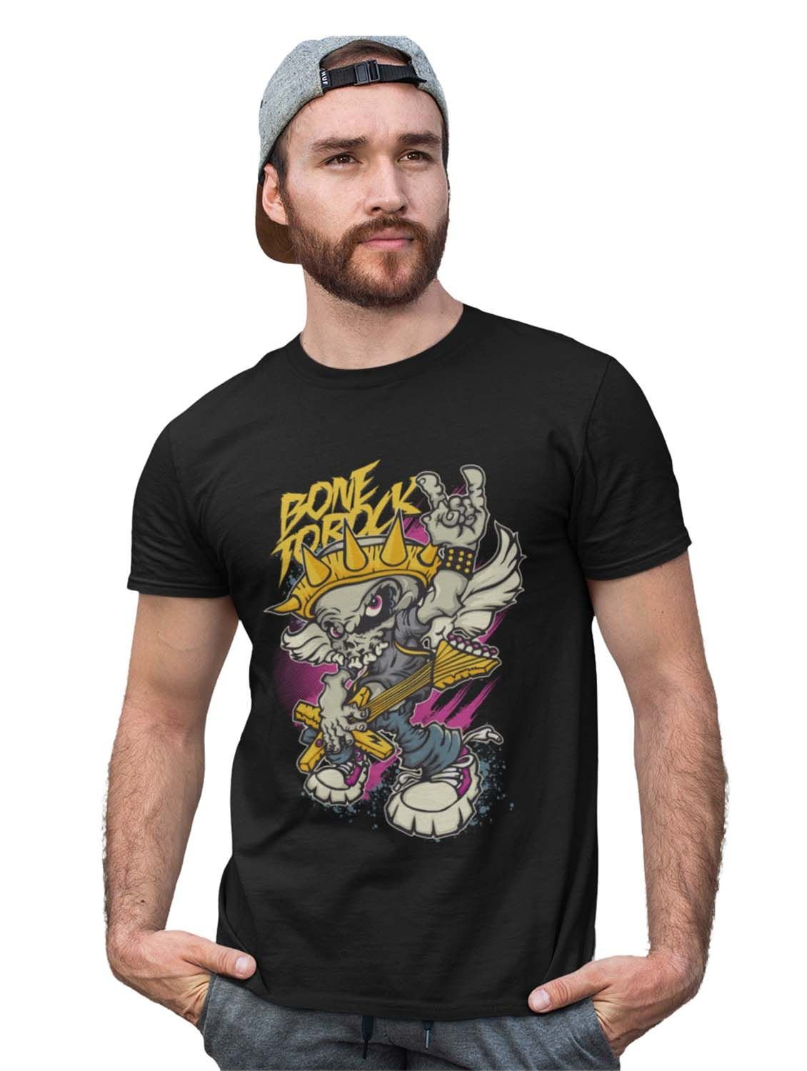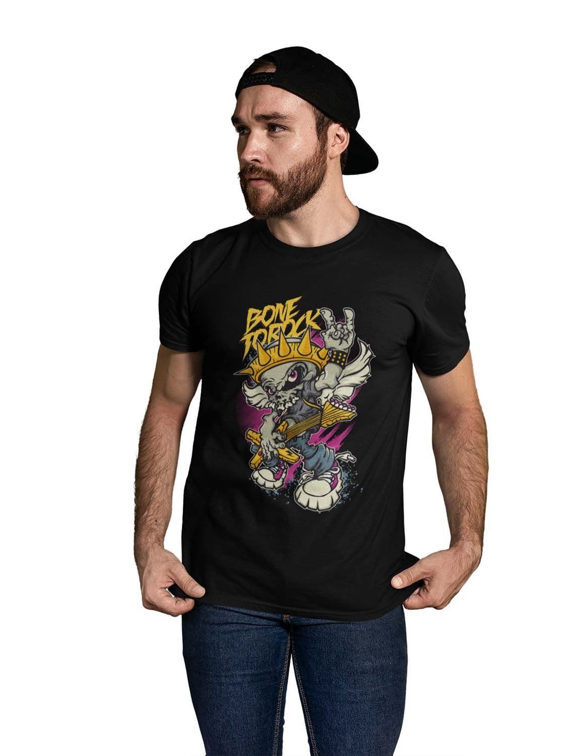 Bone To Rock Black Round Neck Cotton Half Sleeved T-Shirt with Printed Graphics