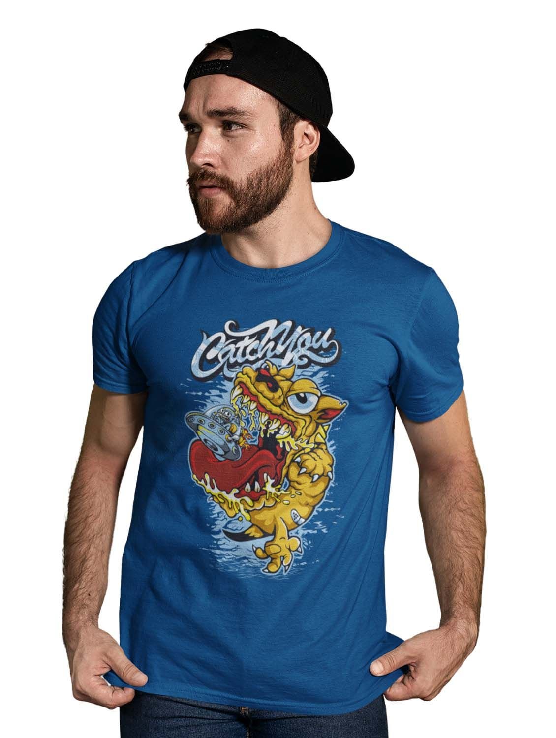 Coscoot Blue Round Neck Cotton Half Sleeved T-Shirt with Printed Graphics