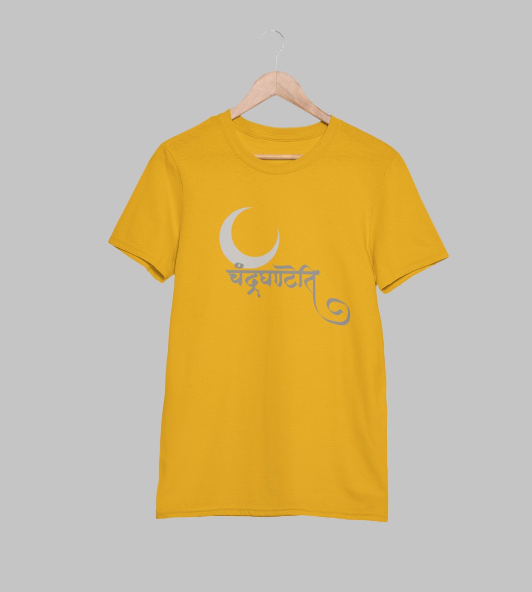 Chandradhantani printed unisex adults round neck cotton half-sleeve yellow tshirt specially for Navratri festival/ Durga puja