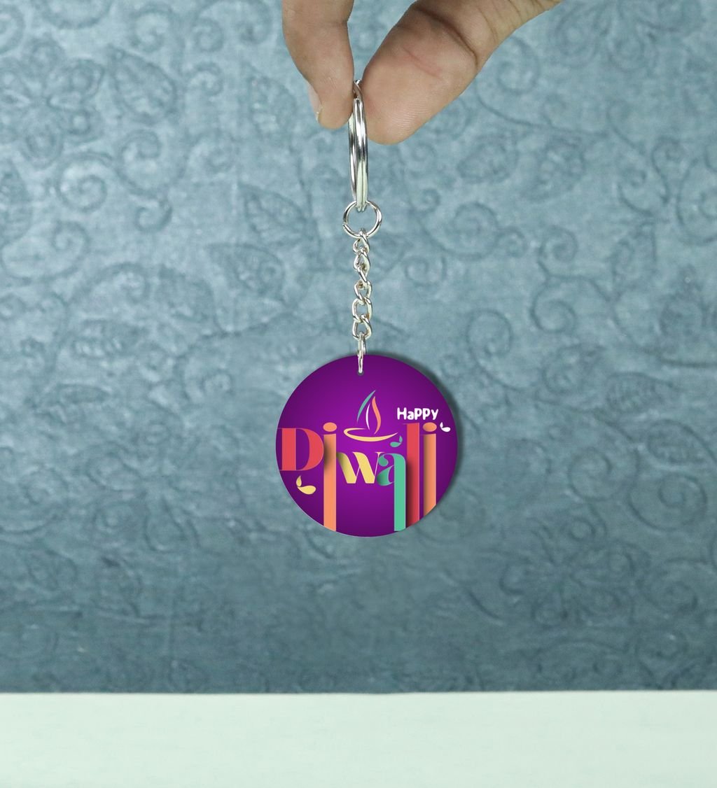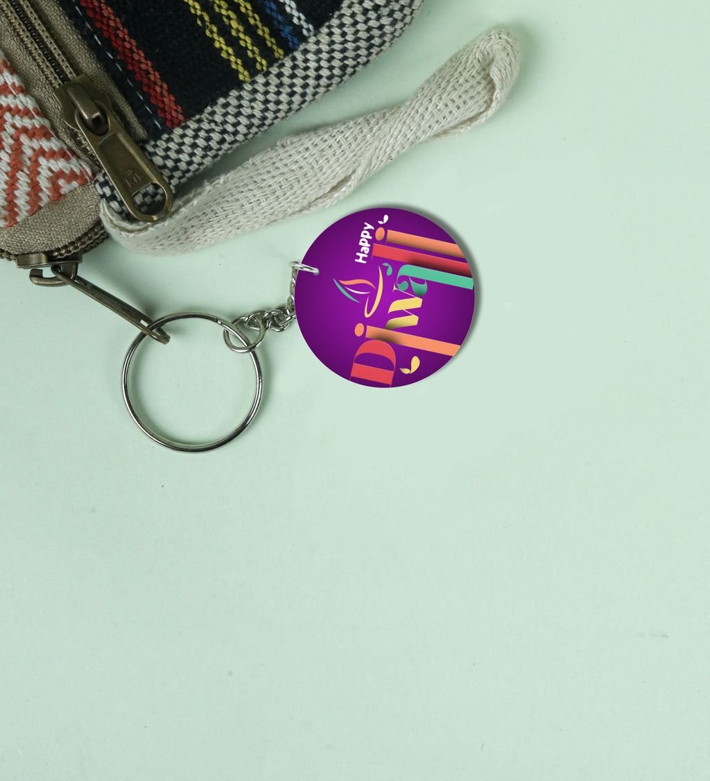 Colorful Lights Shine Diwali Printed Round Keychain Pack of 2