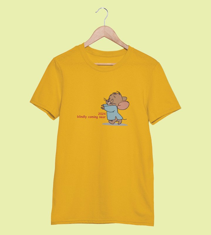 Come Faster 2024 Yellow Printed T-shirt For Mens On New Year Theme