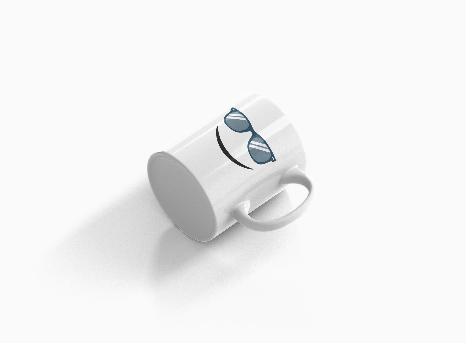 Cool Glasses, Frecky Smile Emoji- emoji printed ceramic white coffee and tea mugs/ cups for emoji lover people