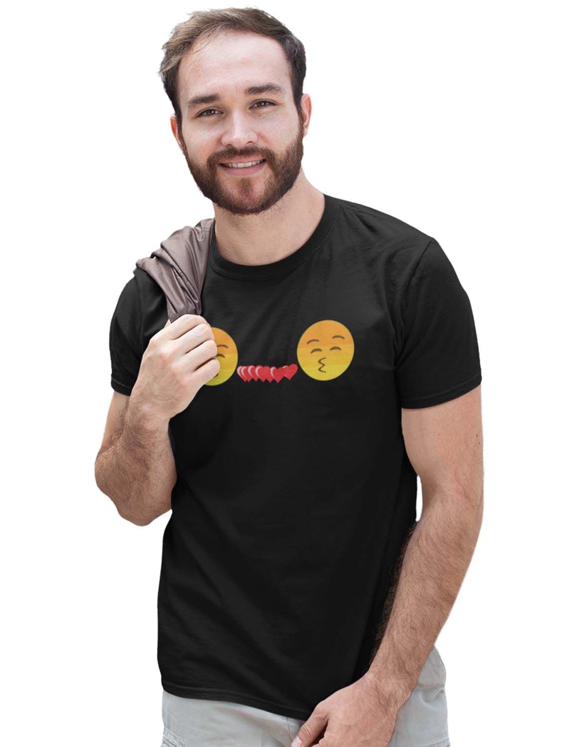 Couples Showing Flying Kiss Emoji T-shirt - Clothes for Emoji Lovers - Suitable for Fun Events - Foremost Gifting Material for Your Friends and Close Ones