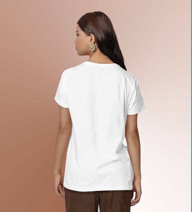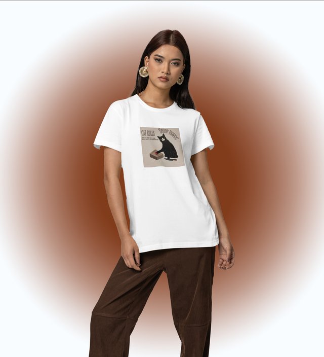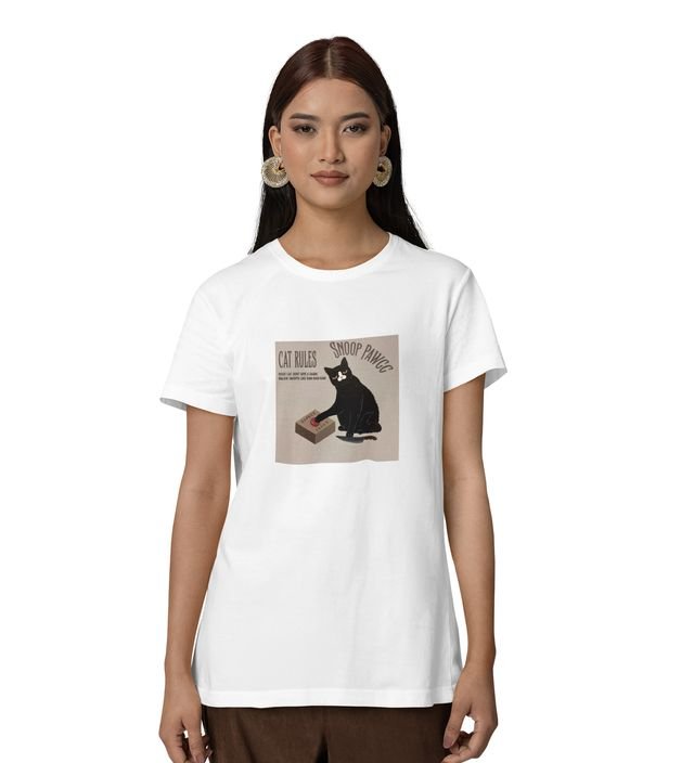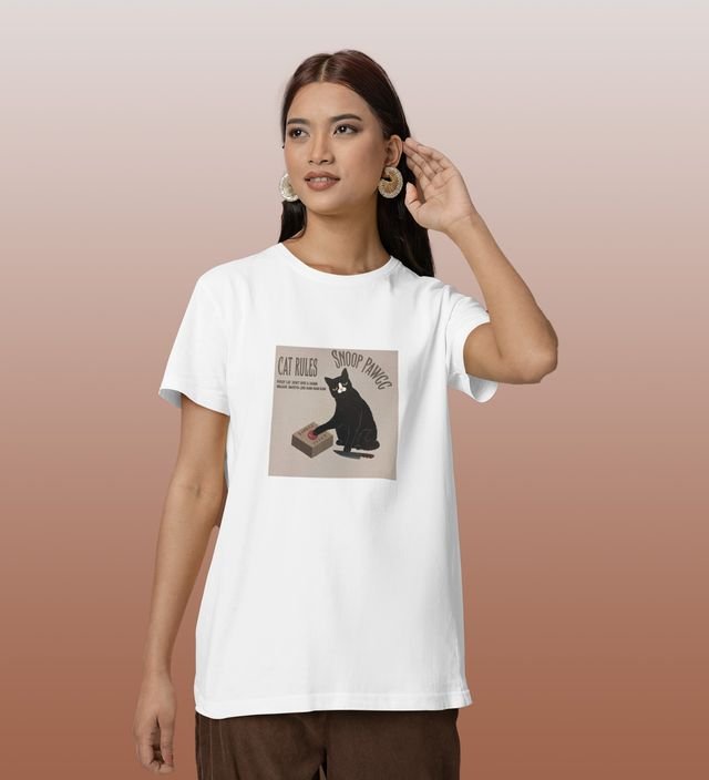 Curious Instinct: Cat with Button Graphic Printed White T-Shirt