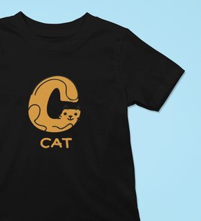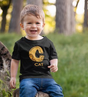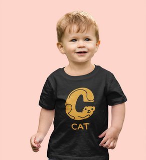 Cute cat, Boys Cotton Text Print Tshirt (black)