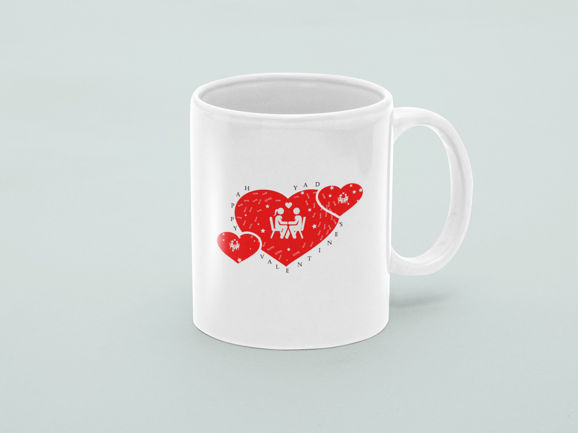 Cute Coulpe with Hearts - valentine themed printed ceramic white coffee and tea mugs/ cups