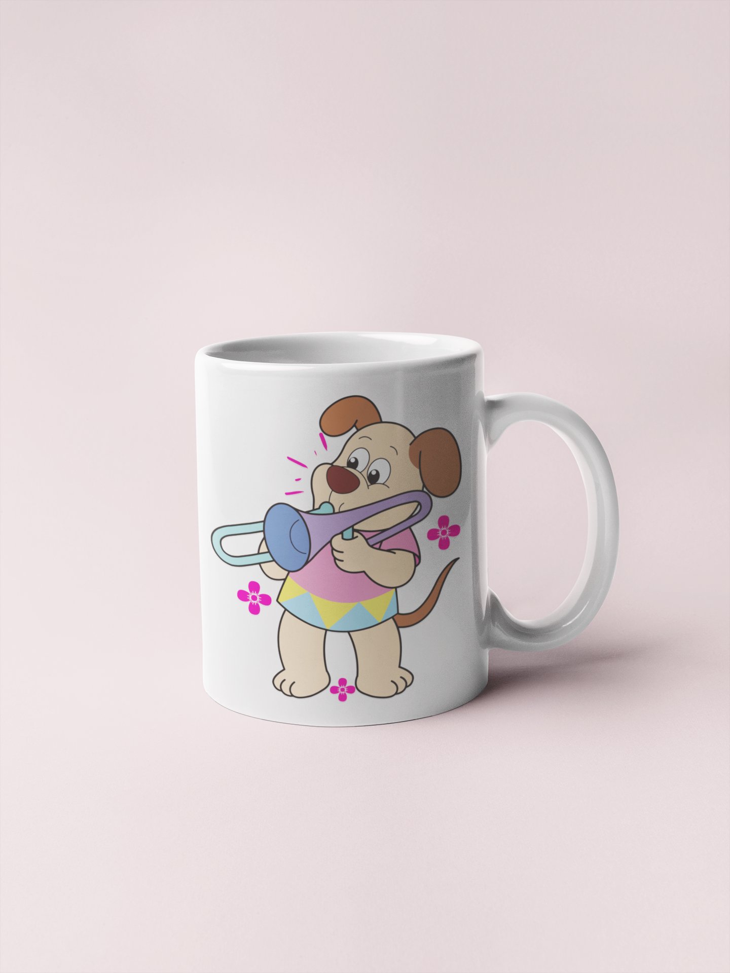 Cute Puppy Illustration - pets themed printed ceramic white coffee and tea mugs/ cups for pets lover people