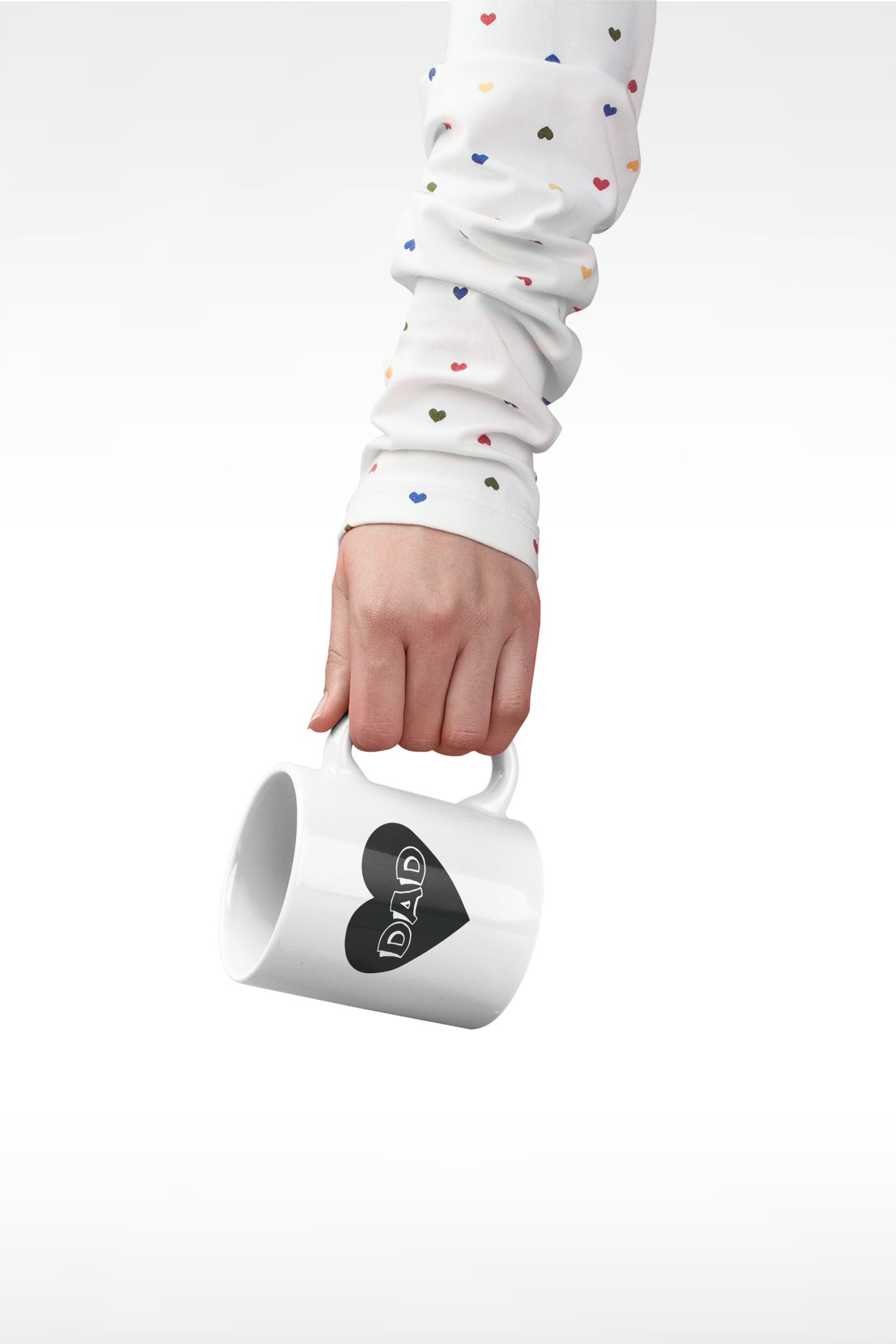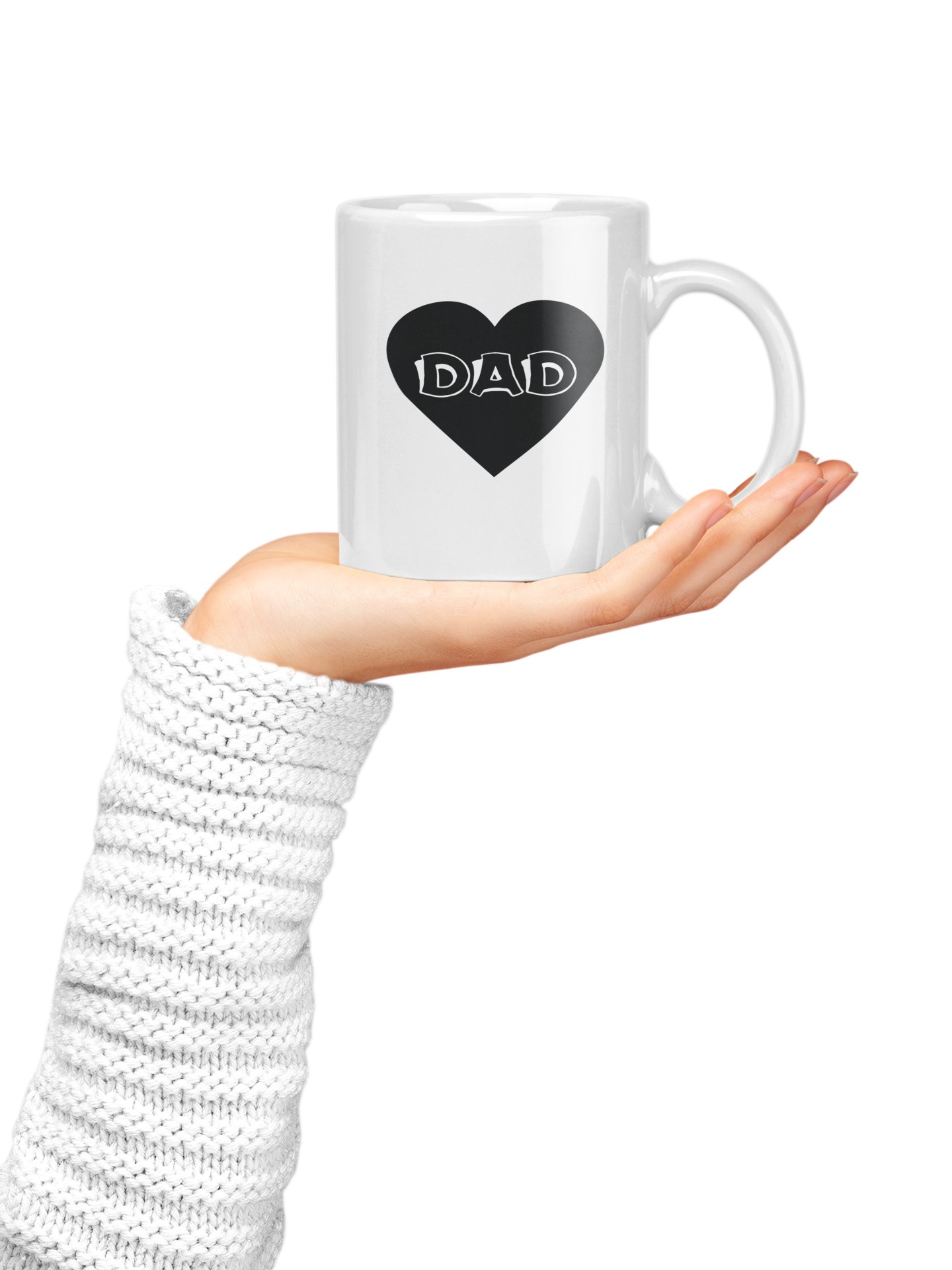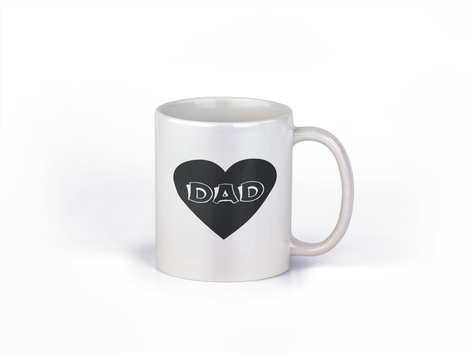 Dad text in heart - family themed printed ceramic white coffee and tea mugs/ cups