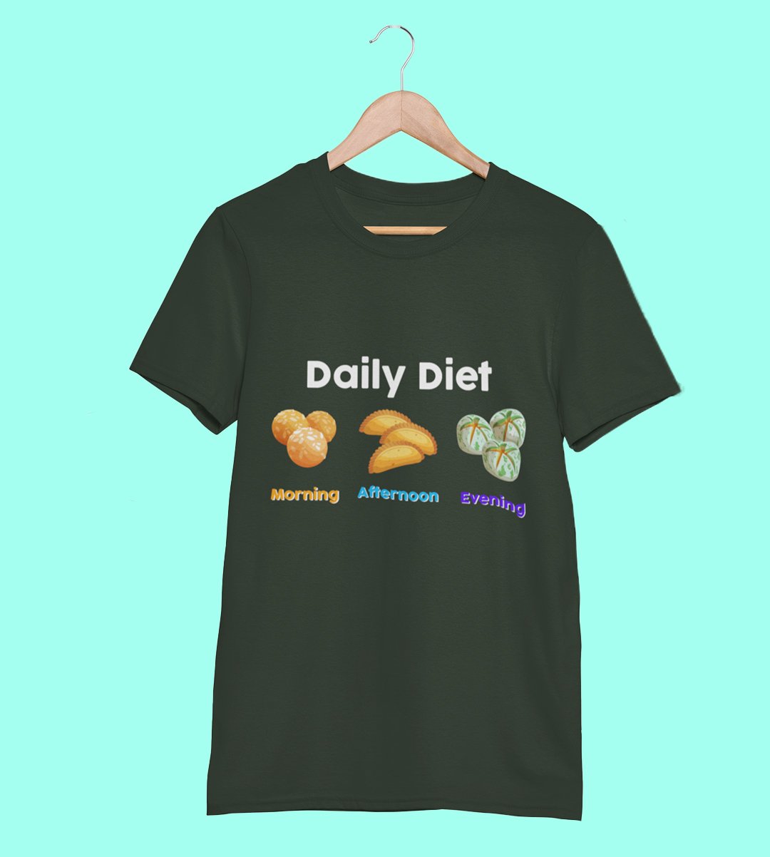 Daily diet printed diwali themed unisex round neck blended green t-shirt specially for diwali festival