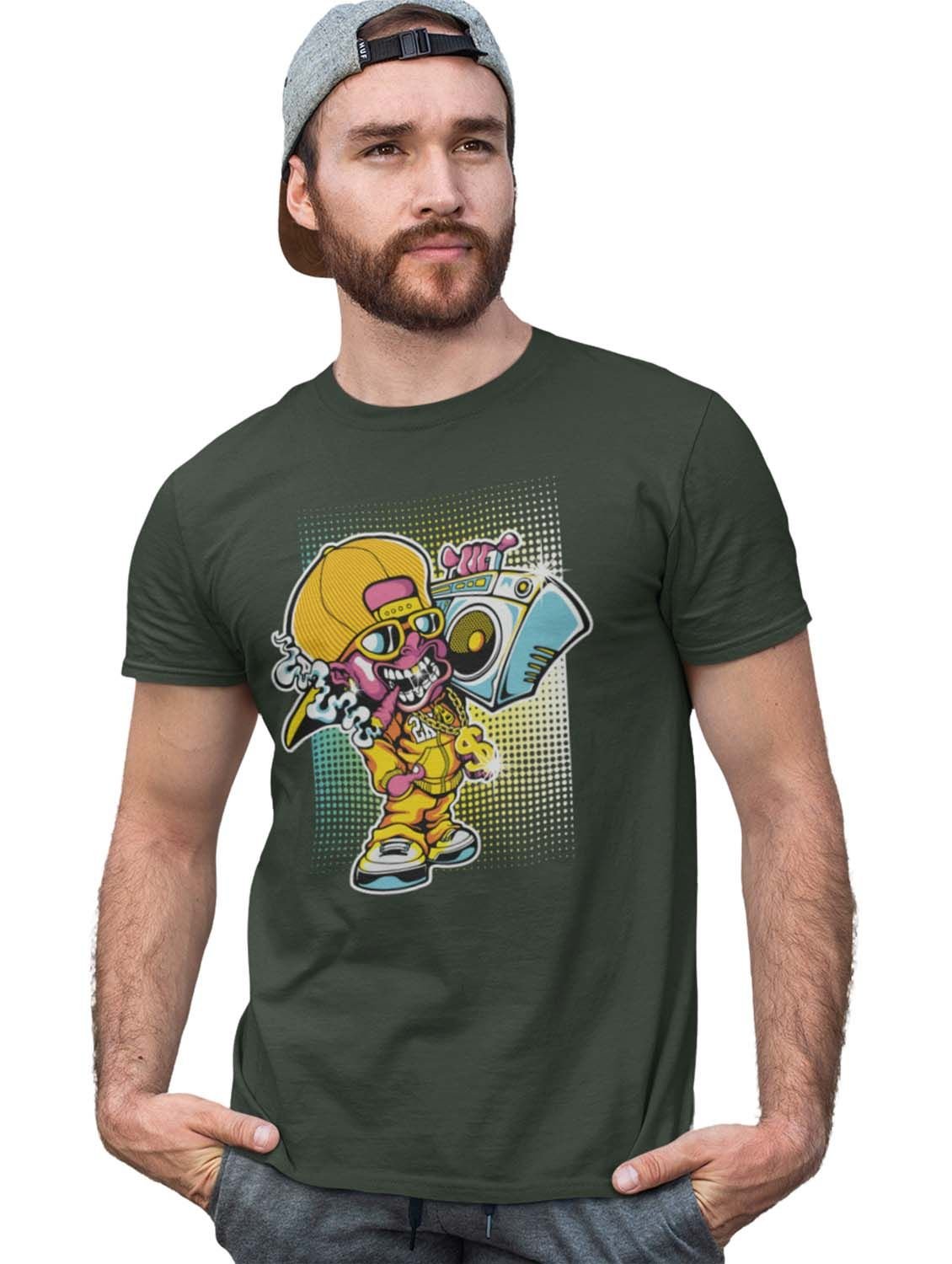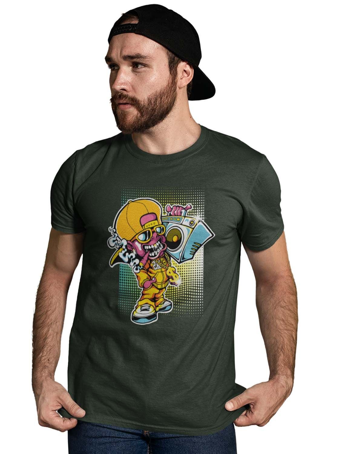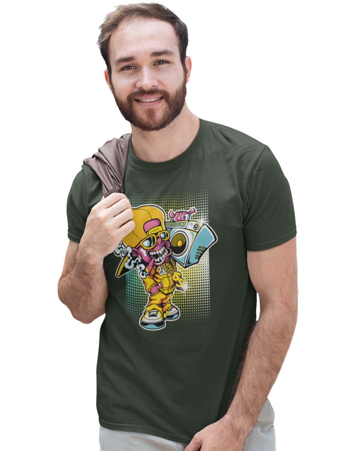 Hip-Hop Drip Green Round Neck Cotton Half Sleeved T-Shirt with Printed Graphics
