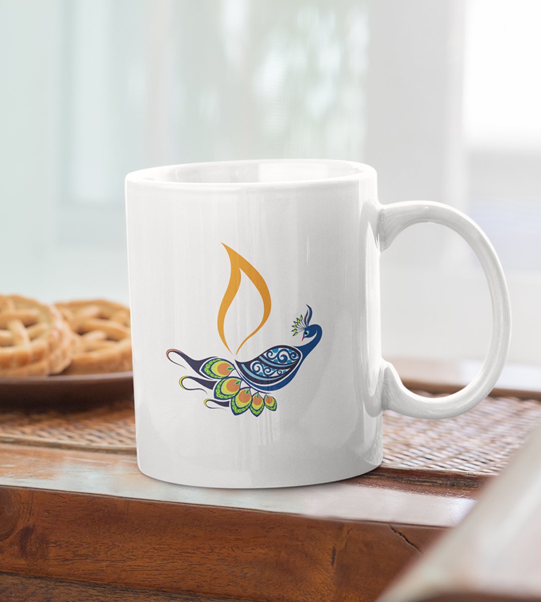 Embrace the majesty of Diwali with our "Peacock Design" Coffee Mug. The exquisite peacock illustration represents elegance and vibrancy, reflecting the grandeur of the festival. Sip in style and celebrate the festive beauty.