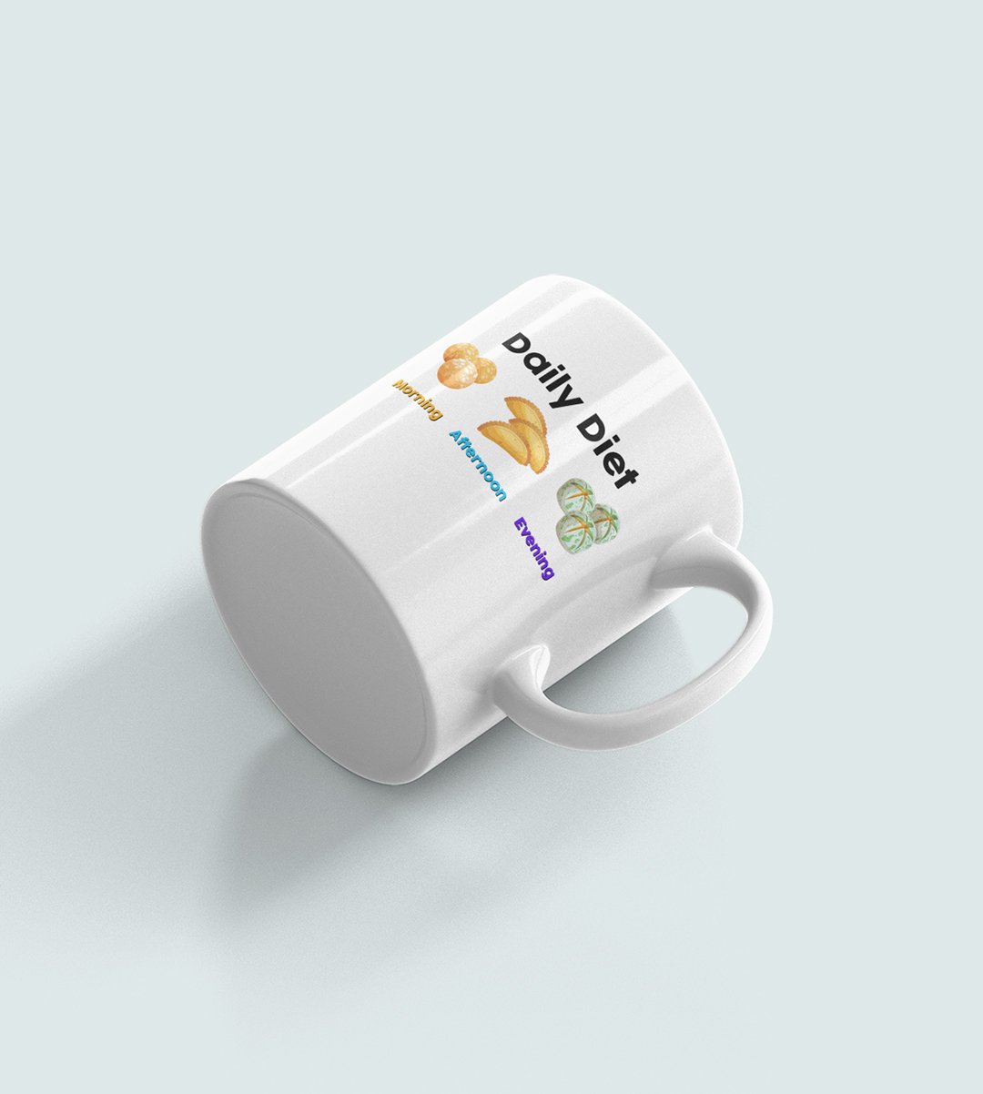 Indulge in the sweetest daily routine with our "Diwali Sweet Lover's Daily Diet" Coffee Mug. This hilarious design showcases the typical daily schedule of a sweet tooth, complete with morning, afternoon, and evening sweets. It's a delightful reminder that every hour is a good time for dessert. Enjoy your favorite beverages with a touch of humor and sweetness during the festival of lights.