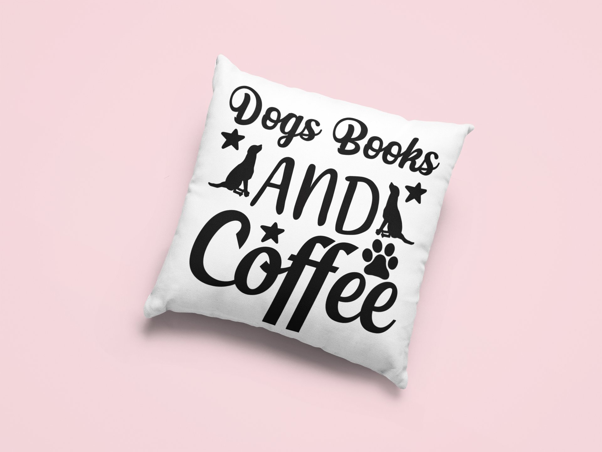 Dogs Books And Coffee -Printed Pillow Covers For Pet Lovers(Pack Of Two)