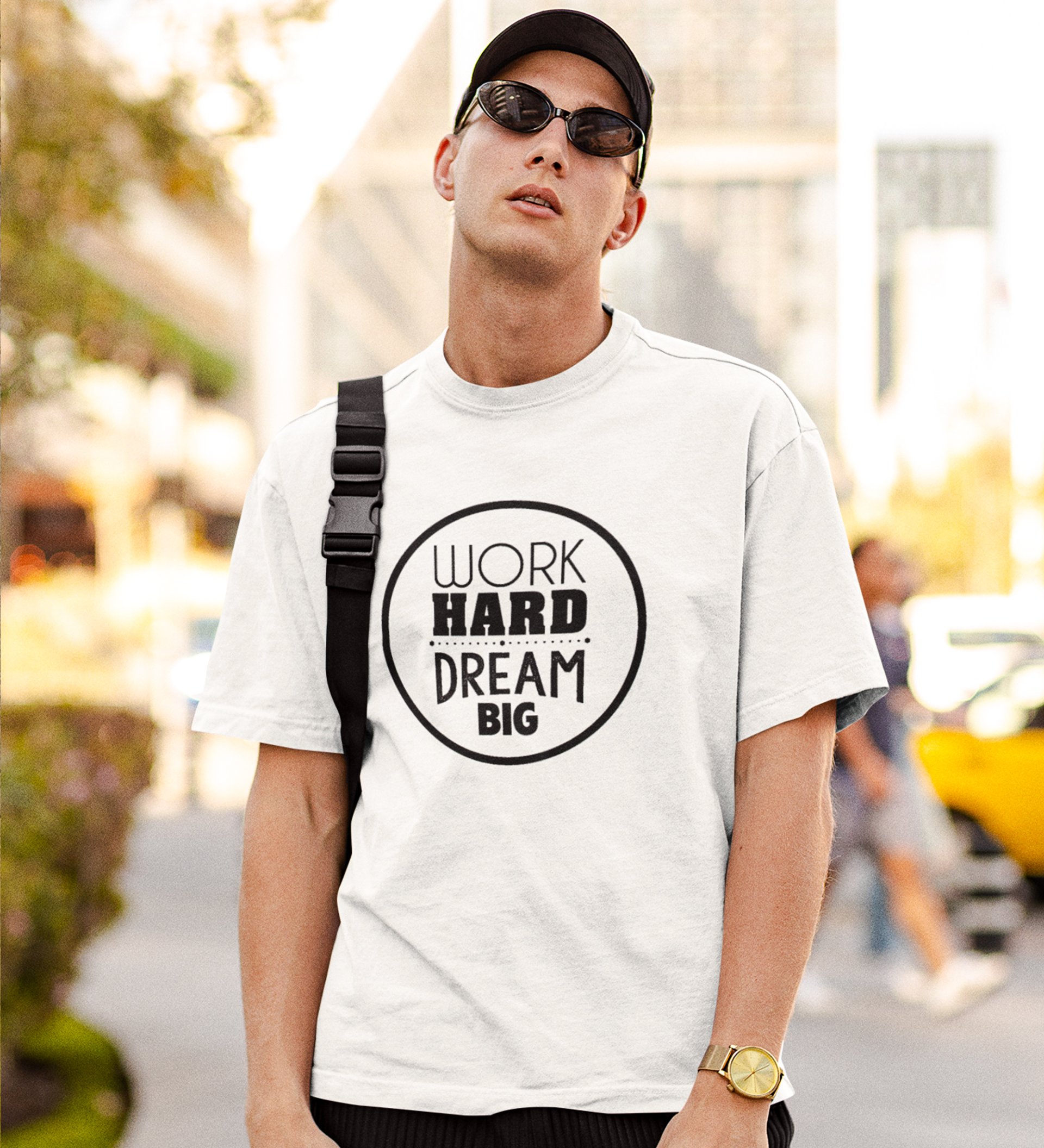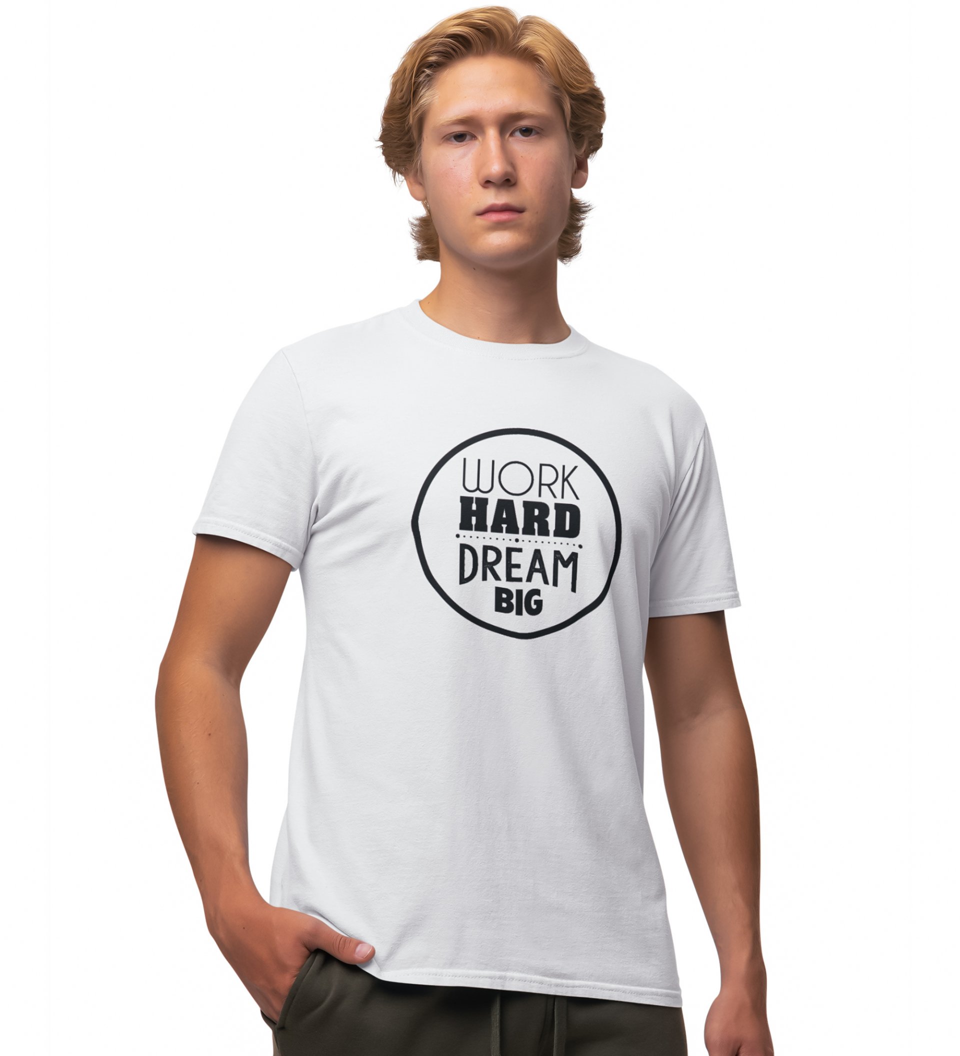 Dream Big White Round Neck Cotton Half Sleeved Men's T-Shirt with Printed Graphics