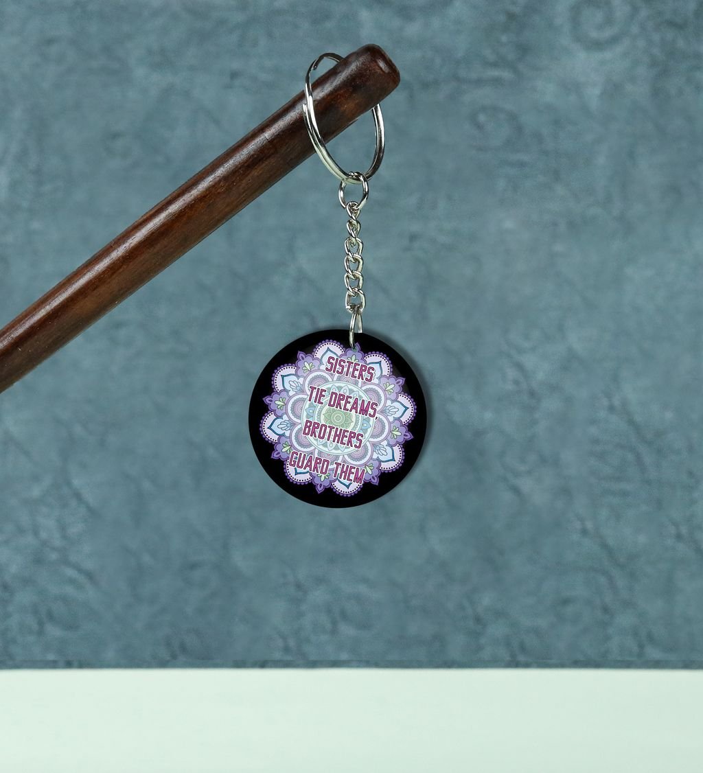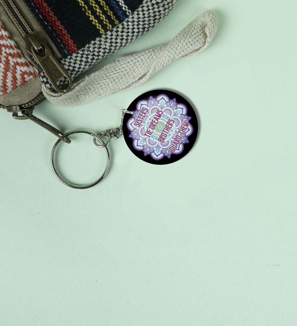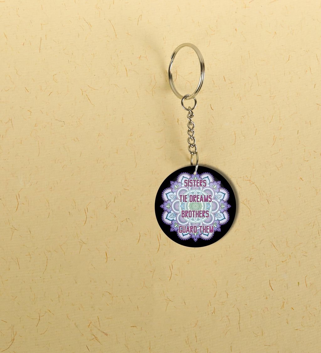 Dreams And Protection Raksha Bandhan Quote Printed Round Keychain Pack of 2