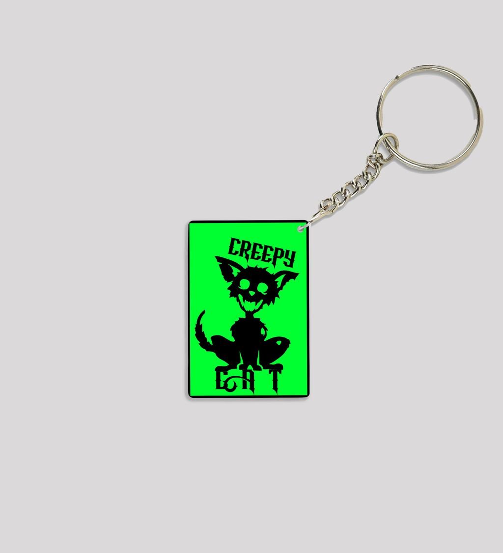 Edgy Scary Cat Graphic for Horror Lovers Printed Keychain Pack of 2