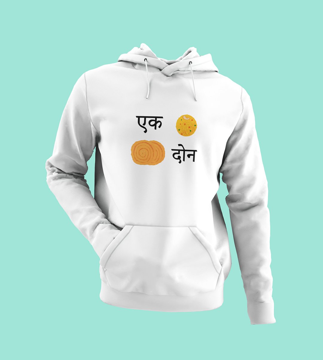 Celebrate the delectable delights of Diwali with our "Diwali Snack Delight" White Hoodie . This delightful design showcases the perfect combination of 1 Ladoo and 2 Chakli, a treat for your taste buds. Sip your and indulge in the joy of Diwali snacking with this mouthwatering White Hoodie .