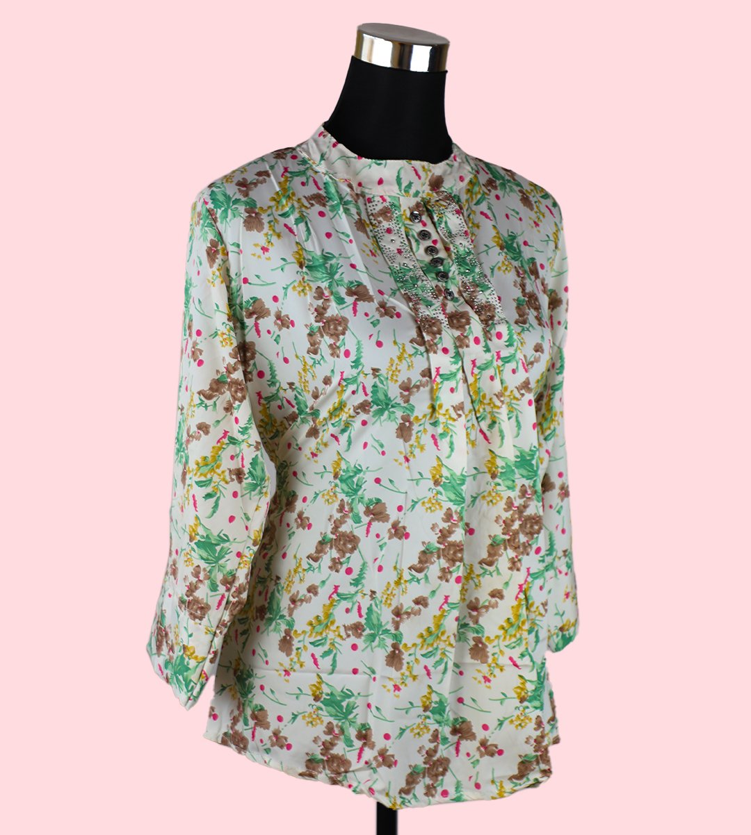 Elevate your wardrobe with our elegant Women's Top, a harmonious blend of White and Cream adorned with Green Floral Accents. This chic and versatile top showcases a classic round neck design and offers a regular fit, making it perfect for various occasions. Crafted from soft Rayon fabric, it combines style and breathability. The captivating Green Floral Print adds a refreshing and chic touch to your look.