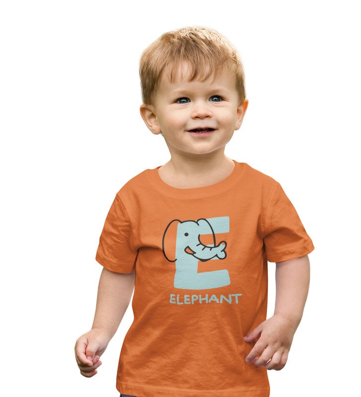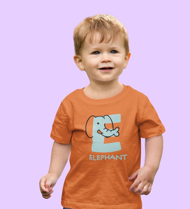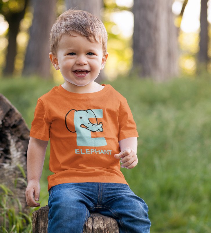 Elephantastic, Boys Round Neck Blended Cotton Tshirt (orange)