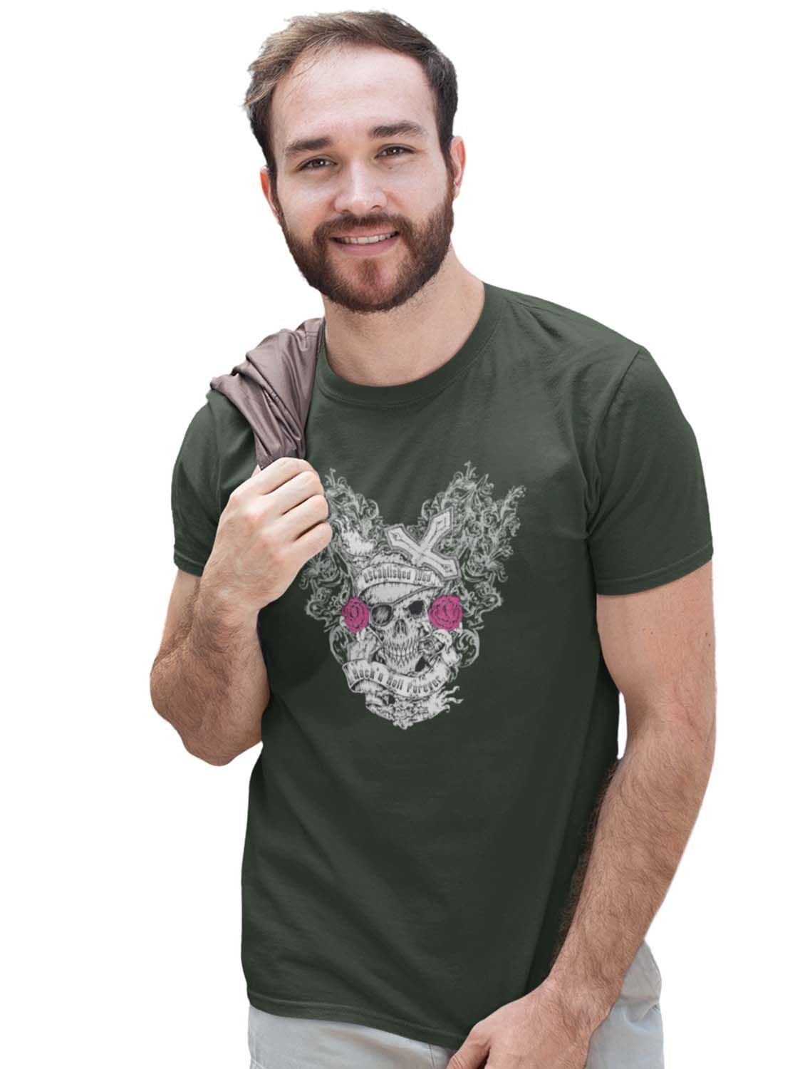 The Knight Green Round Neck Cotton Half Sleeved T-Shirt with Printed Graphics