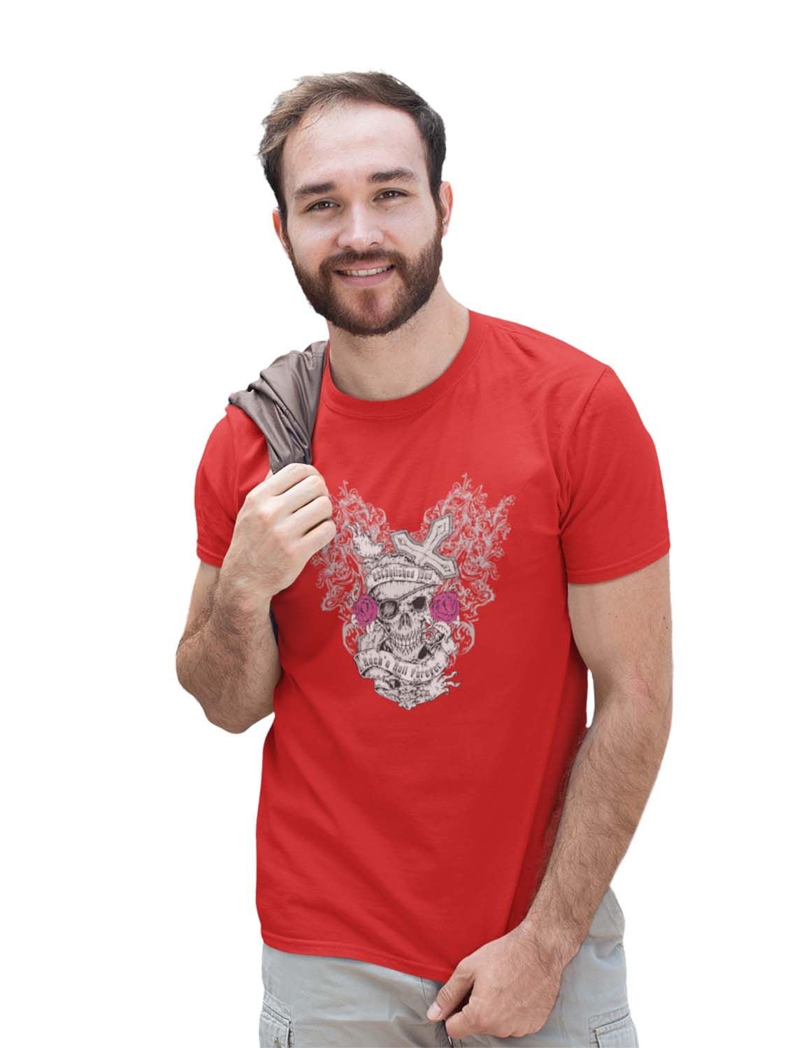 The Knight Red Round Neck Cotton Half Sleeved T-Shirt with Printed Graphics