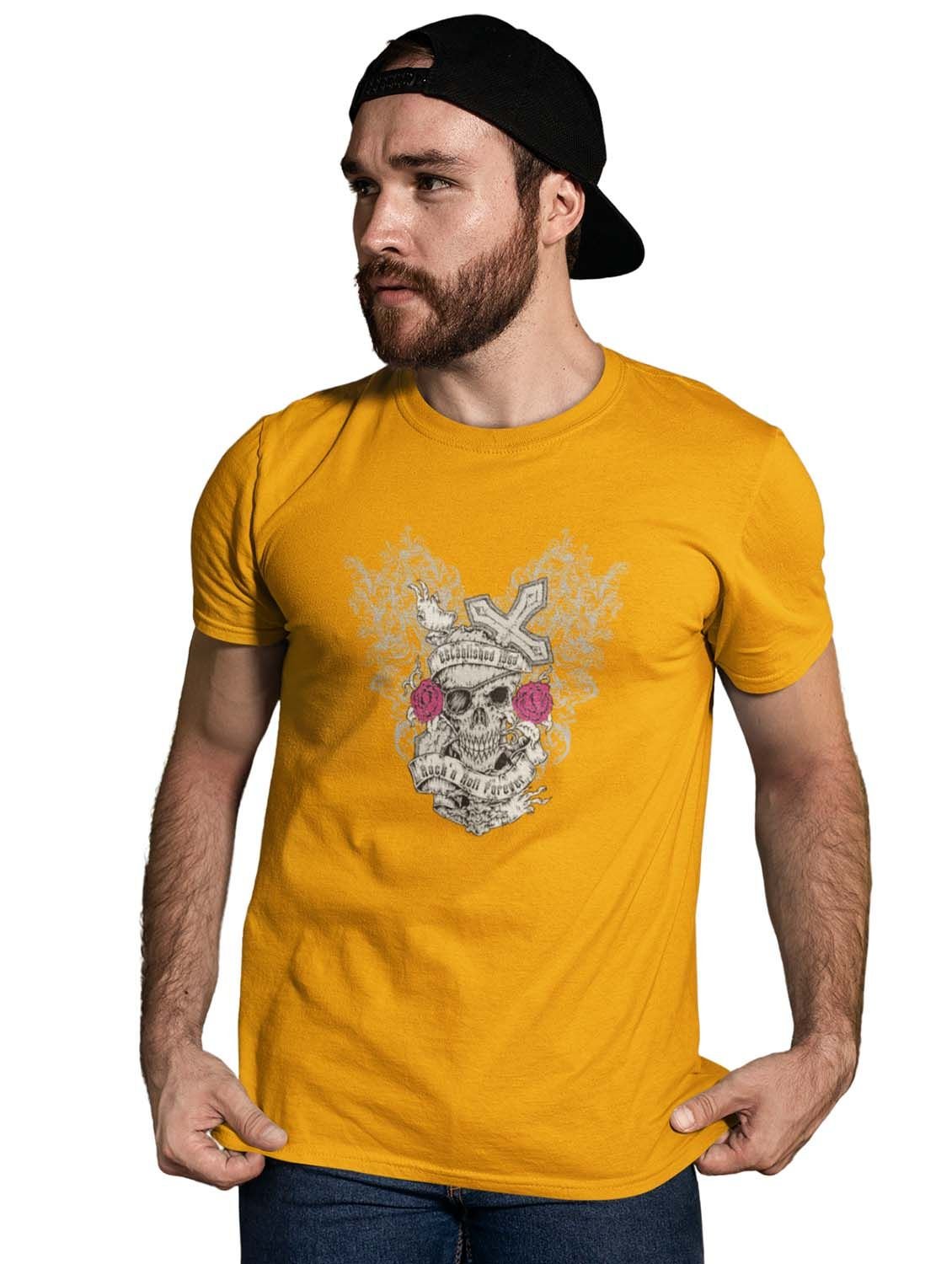 Rock N Roll Forever Yellow Round Neck Cotton Half Sleeved T-Shirt with Printed Graphics