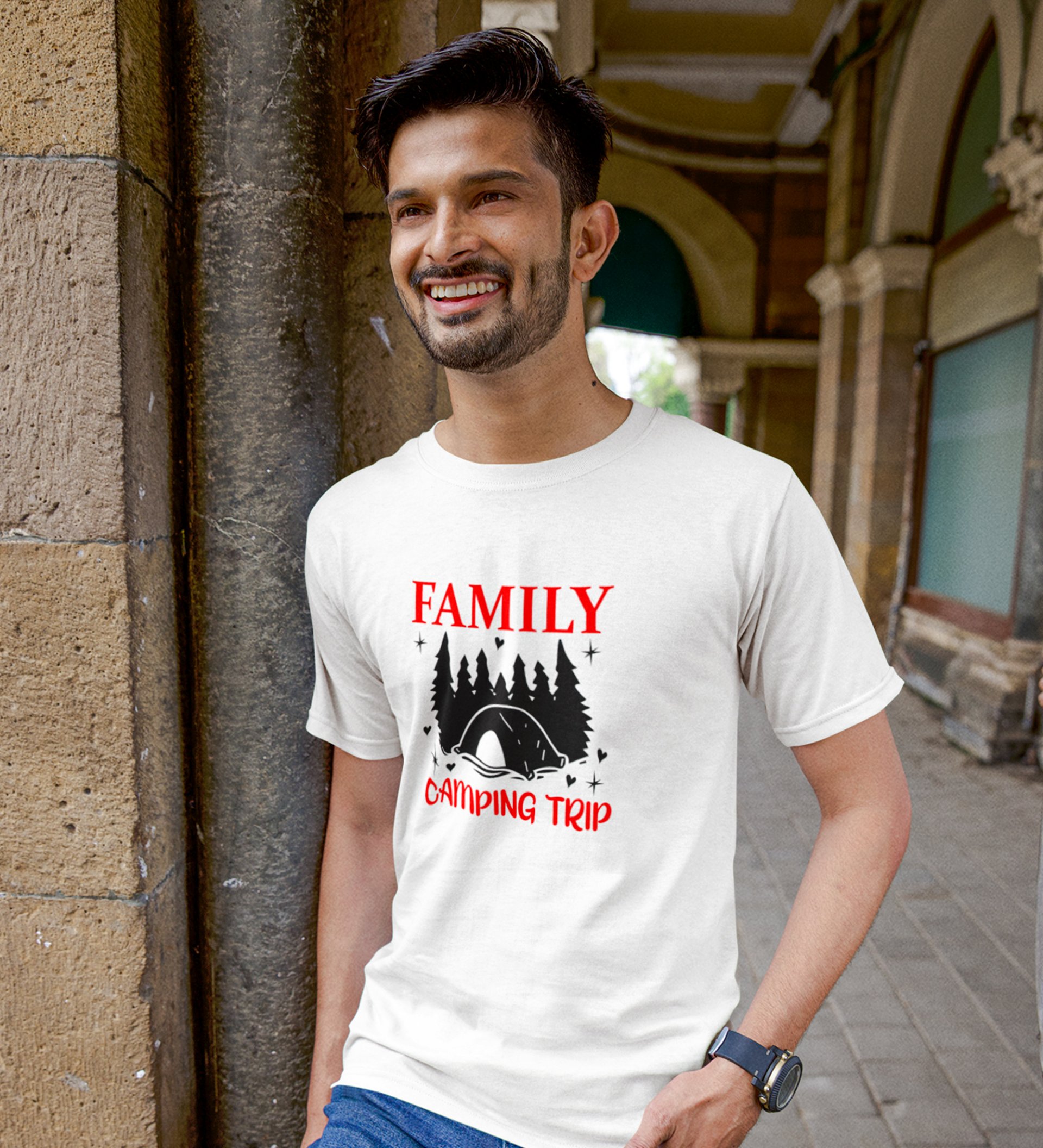 JD.TRENDS A Trip With Family White Round Neck Cotton Half Sleeved Men's T-Shirt with Printed Graphics
