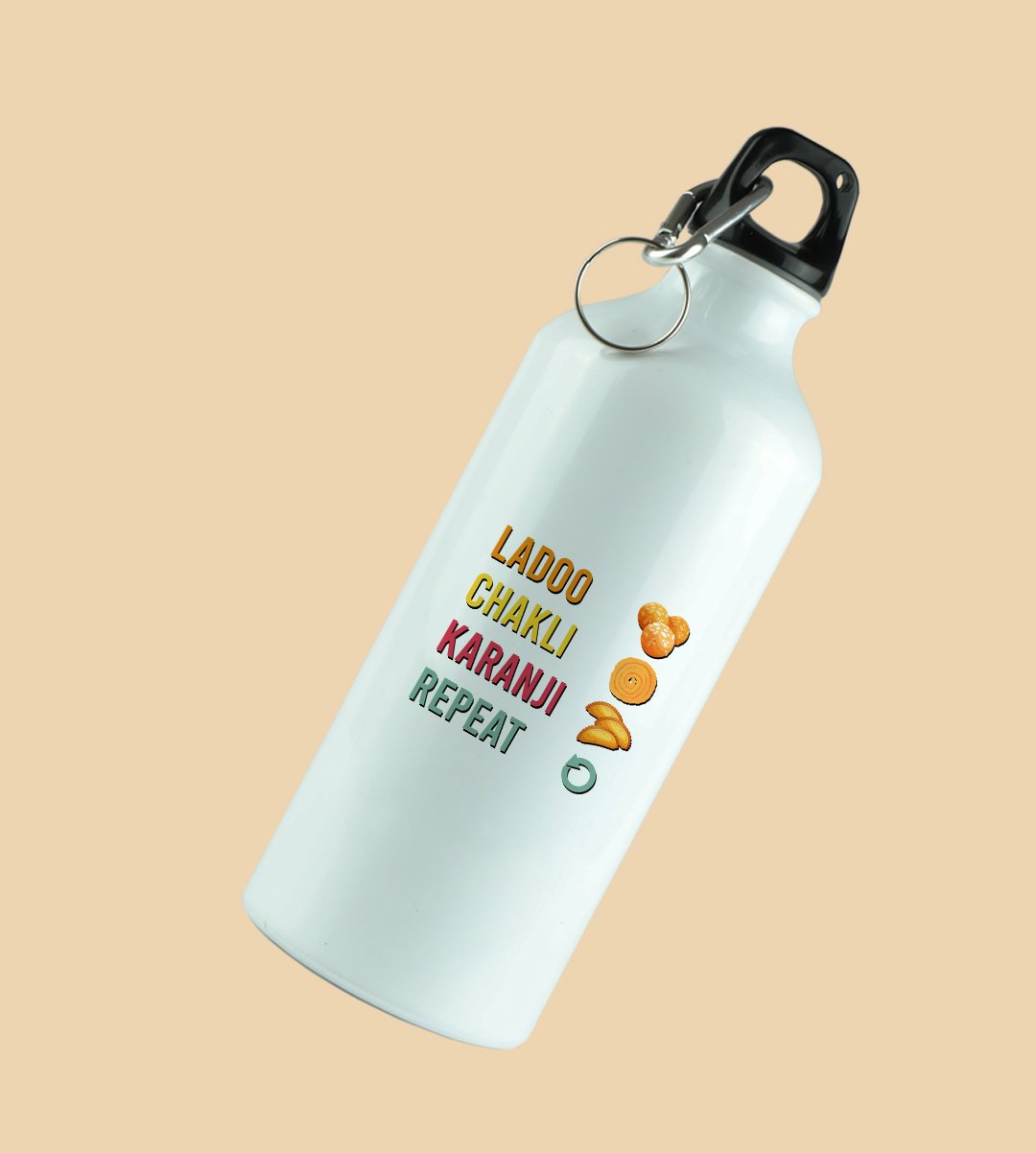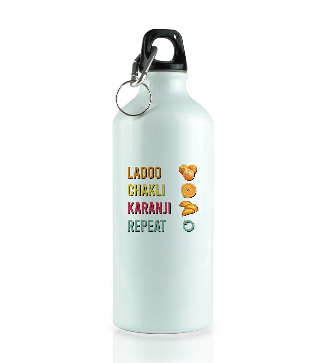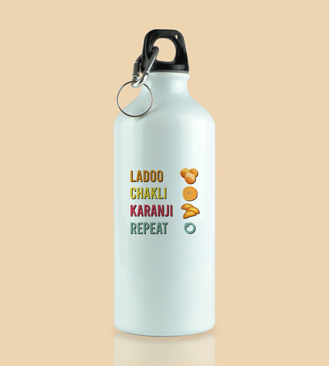 Embrace the sweet chaos of the festive season with our "Festival Sweet Tooth" sipper bottle. The playful message "Ladoo, Chakli, Karanji & Repeat" perfectly captures the joy of indulging in an abundance of faral and sweets. Sip your coffee with a side of laughter, knowing that the fun continues with every delightful bite.