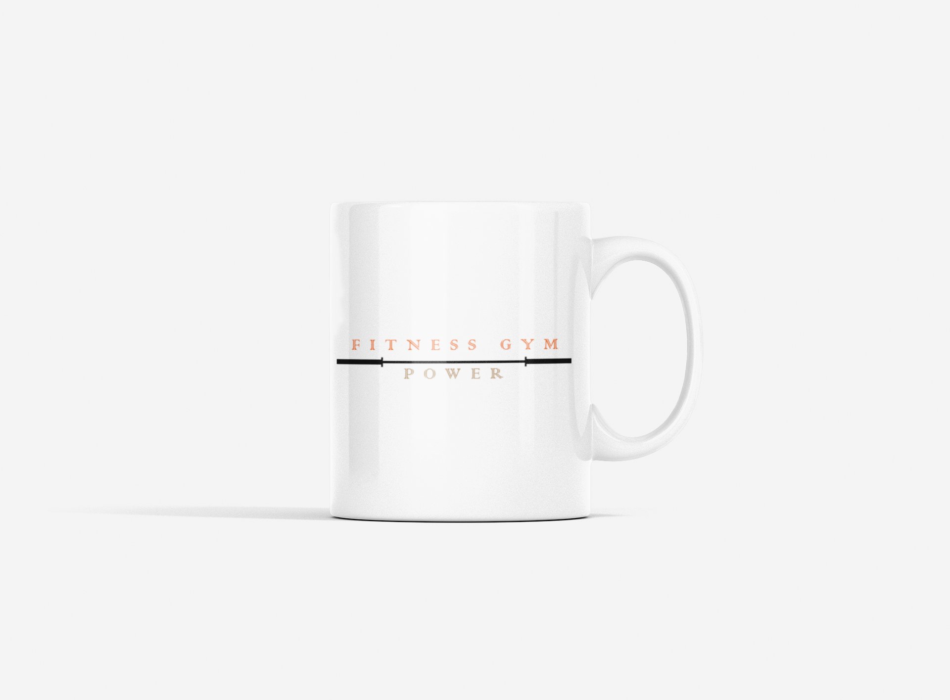 Fitness Gym Power, (BG Orange) - gym themed printed ceramic white coffee and tea mugs/ cups for gym lovers