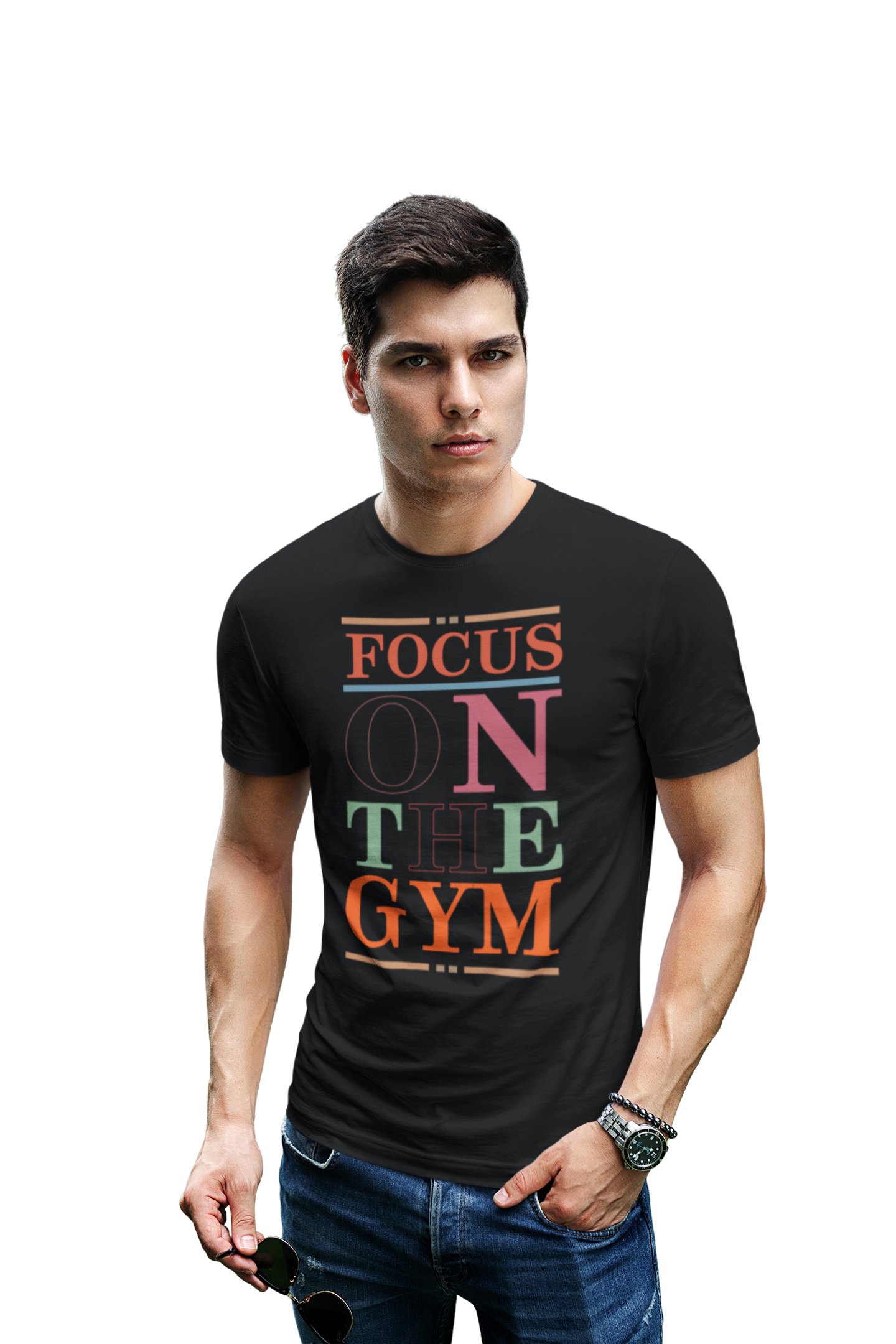 Focus On The Gym, Round Neck Gym Tshirt (Black Tshirt) - Clothes for Gym Lovers - Suitable for Gym Going Person - Foremost Gifting Material for Your Friends and Close Ones