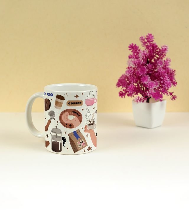 Funky Coffee Beans and Steam Vibe Printed Coffee Mug 250ml