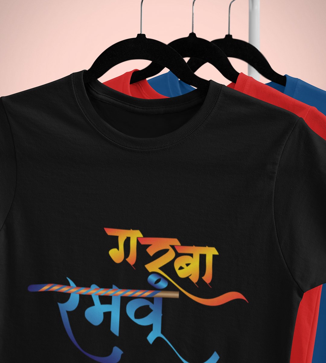 Garba Rambu printed unisex adults round neck cotton half-sleeve black tshirt specially for Navratri festival/ Durga puja