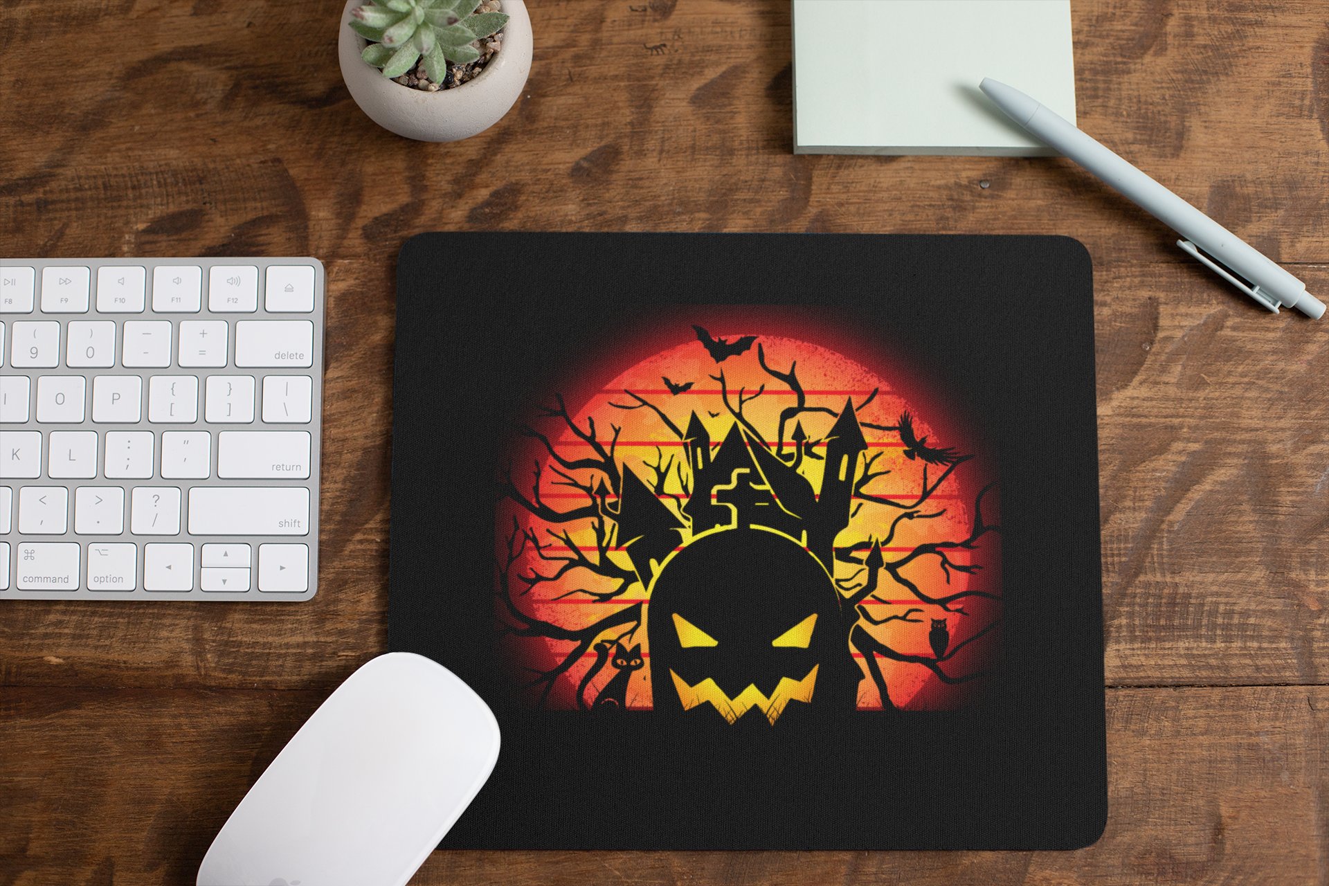 Ghost -Red Moon Behind Haunted House-Halloween Theme Mousepad