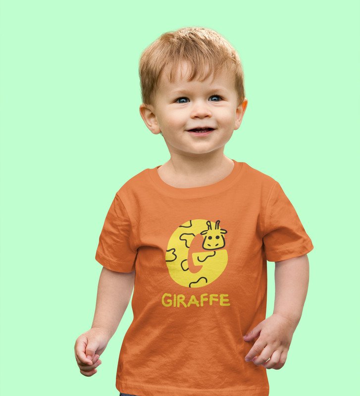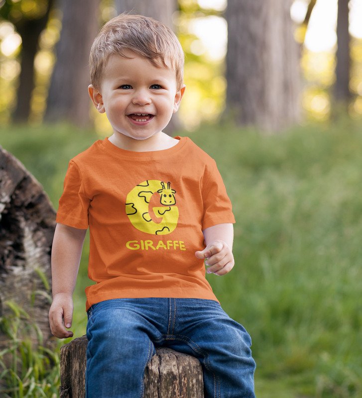 Giraffe, Boys Printed Crew Neck Tshirt (orange)