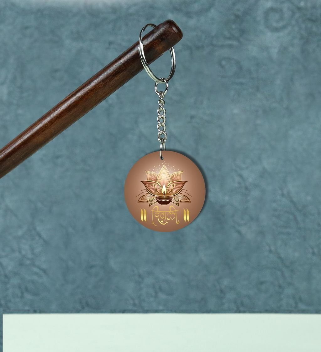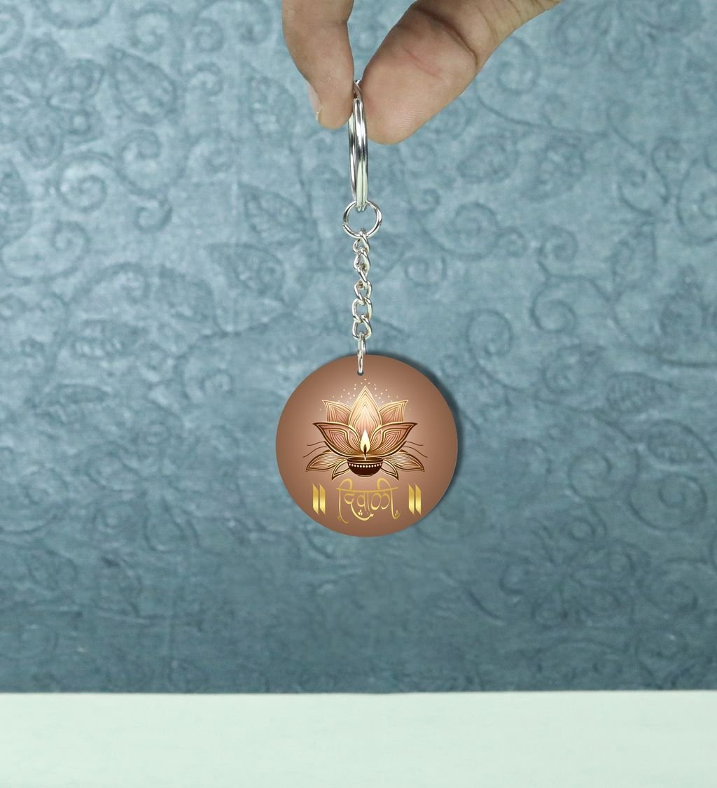 Golden Glow Lamps Diwali Printed Round Keychain Pack of 2